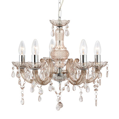 9114555MI Acrylic 5 Light Chrome & Mink Chandelier