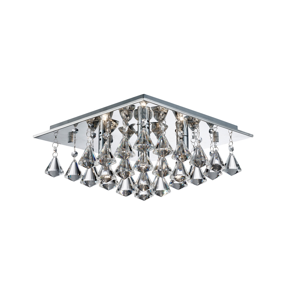 6 light square crystal Flush polished Chrome On Sale