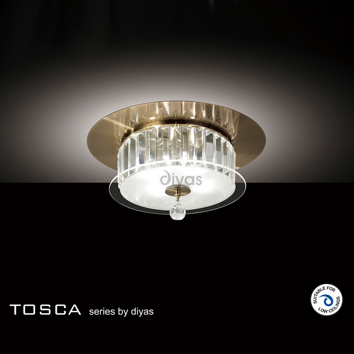 Diyas IL30243 Tosca 4 Light Antique Brass Crystal Flush