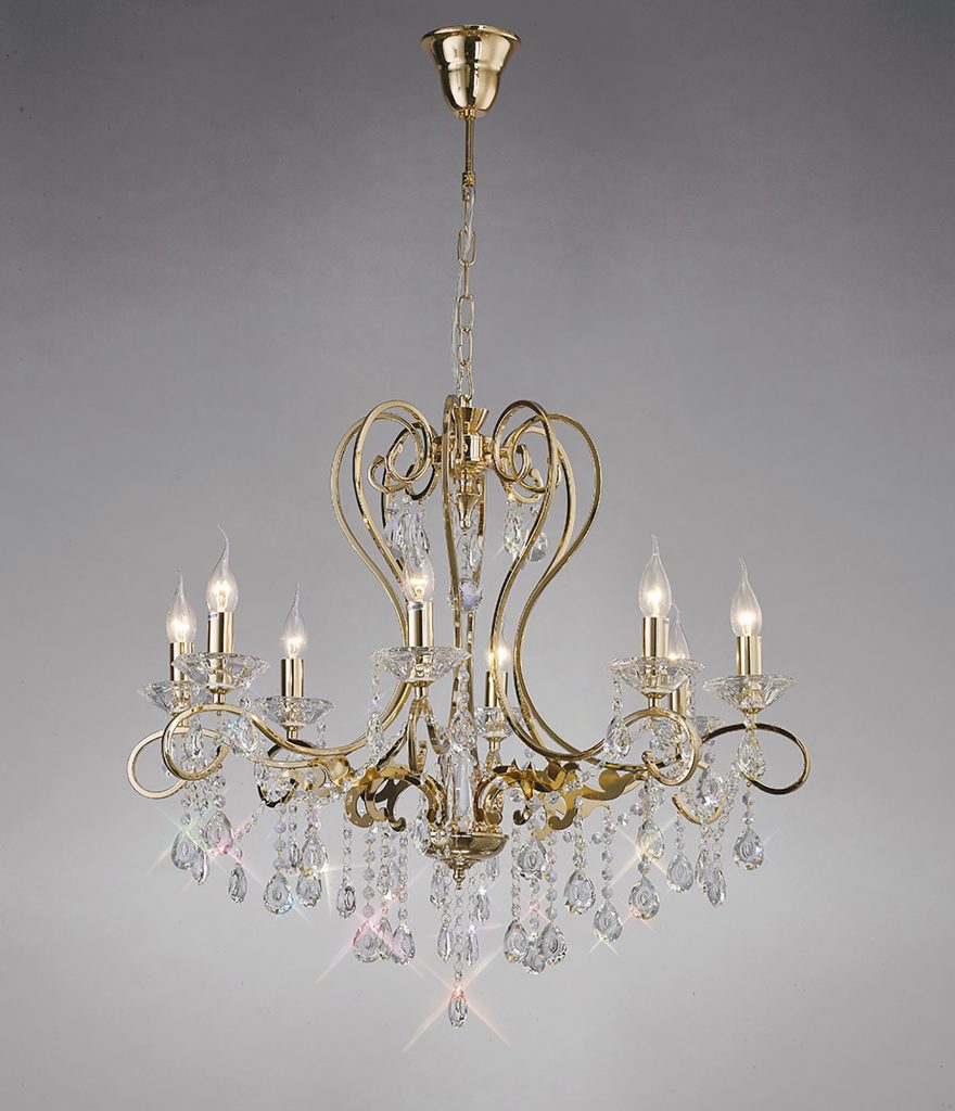 Diyas IL30328 Torino 8 Light Crystal Chandelier Gold