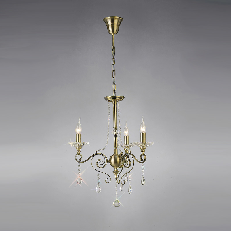 Diyas IL32073 Libra 3 Light Crystal Chandelier Antique Brass