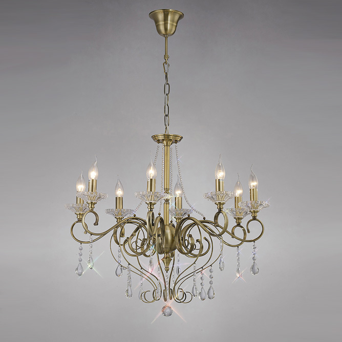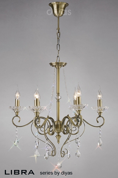 Diyas IL32078 Libra 8 Light Crystal Chandelier Antique Brass