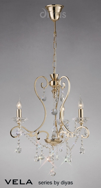Diyas IL32063 Vela 3 Light Crystal Chandelier French Gold