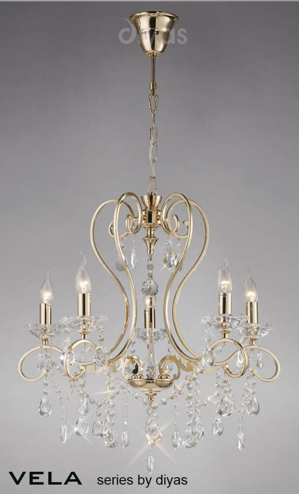 Diyas IL32065 Vela 5 Light Crystal Chandelier French Gold