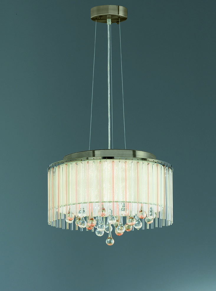 Franklite FL2346/6 Ambiance 40cm crystal Pendant Bronze with lurex cream shade