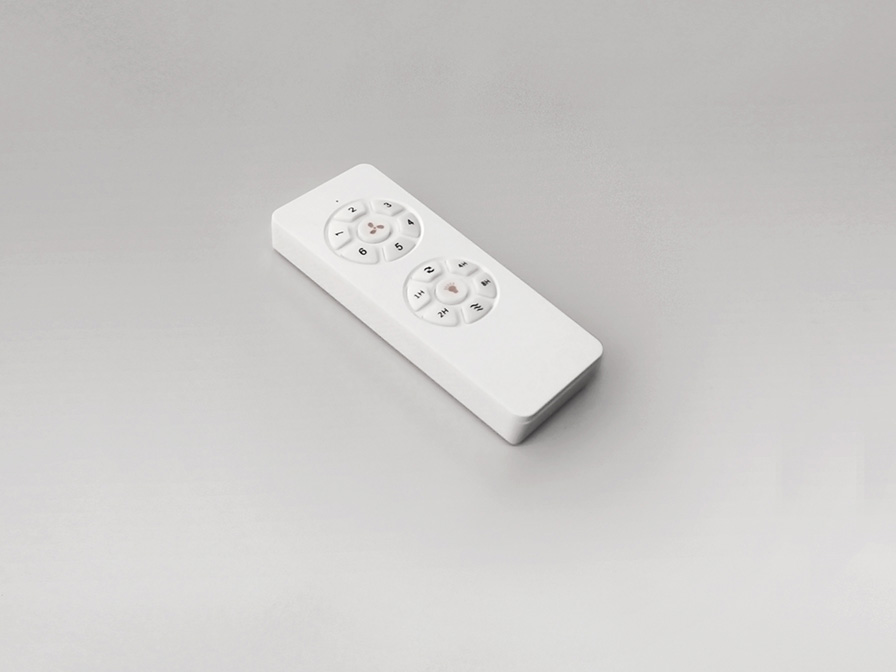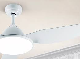 Celing fan with LED light. Made of metal and blades in plastic, white finish. Opal acrylic diffuser. Fan with 6-speed reversing DC motor. CCT LED of 3 colour temperature tonalities. Timer. Anti-rocking mounting system.
