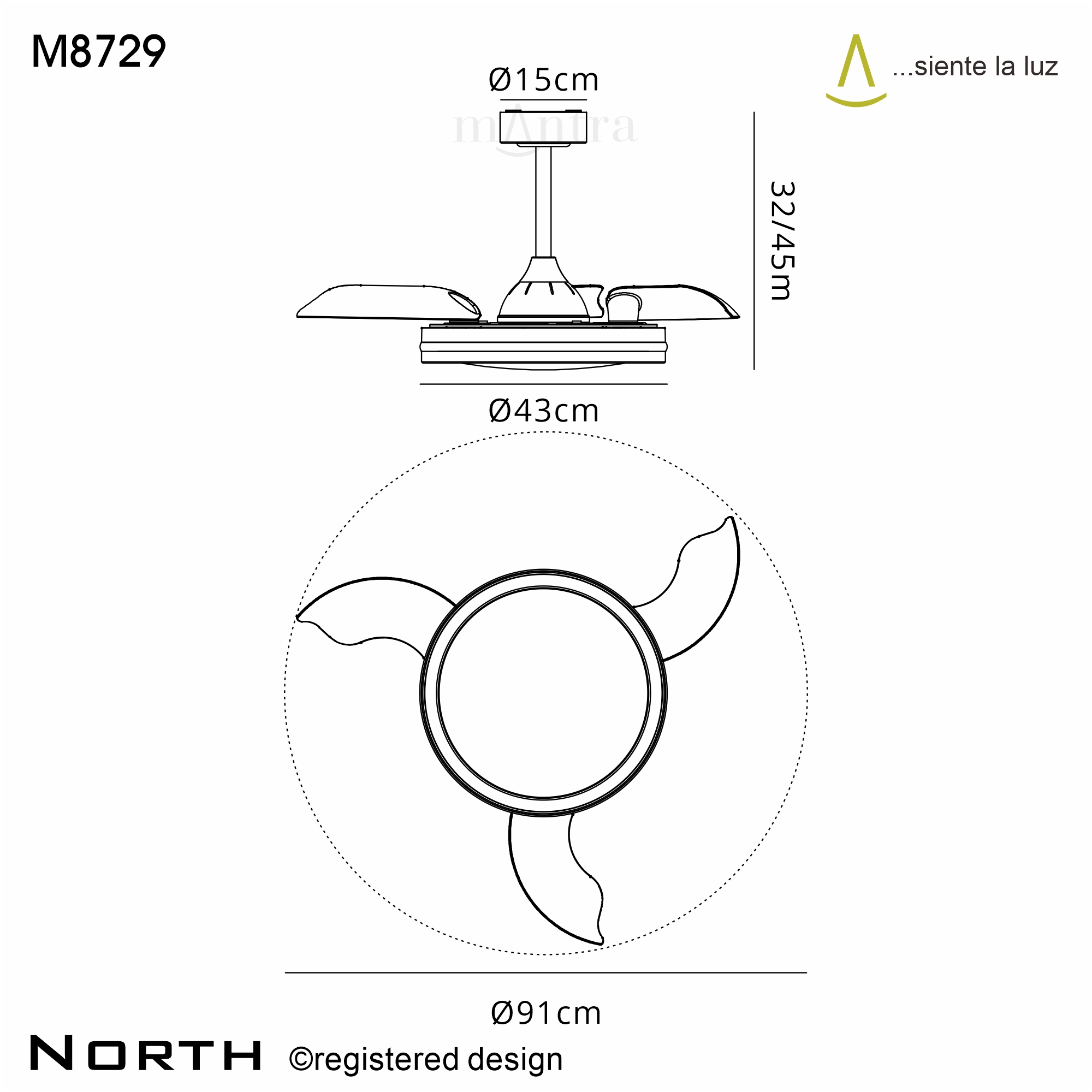 Light and fan operated by remote control. Supplied with two drop rod options.