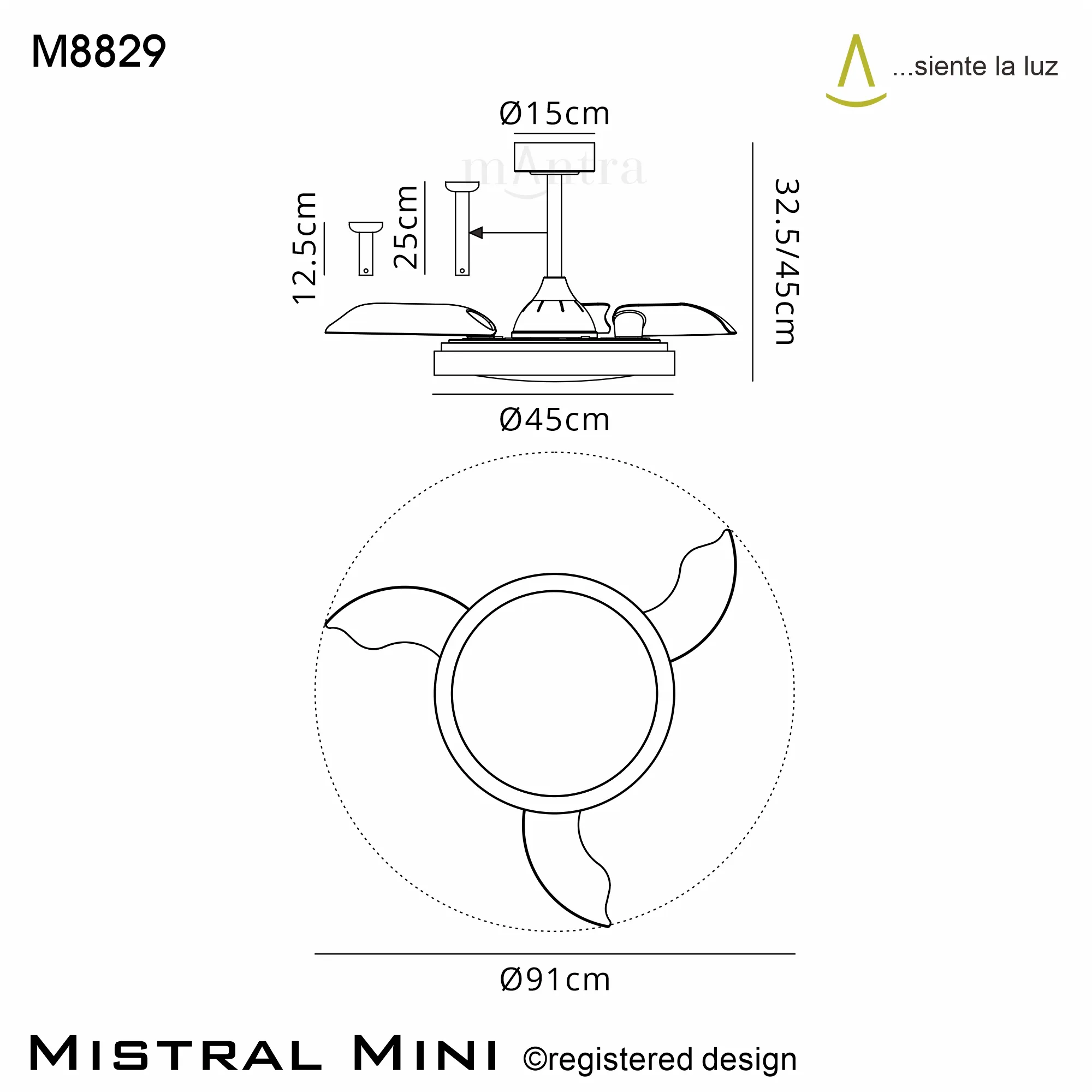 Mantra Mistral Mini 91cm Retractable ceiling fan White with remote