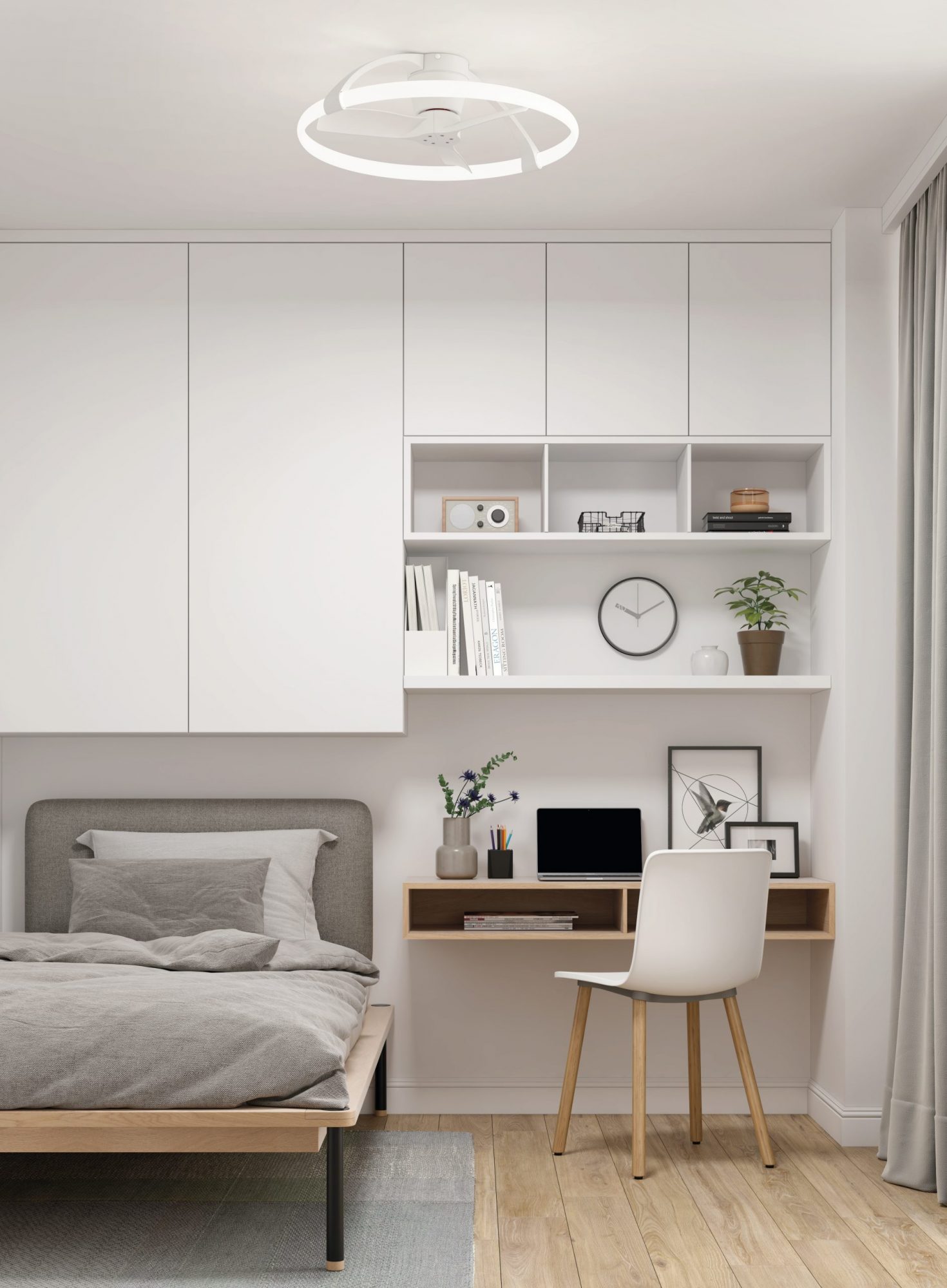 55W LED Dimmable Ceiling Light With Built-In 30W DC Reversible Fan, White Finish c/w Remote Control, APP & Alexa/Google Voice Control, 5200lm