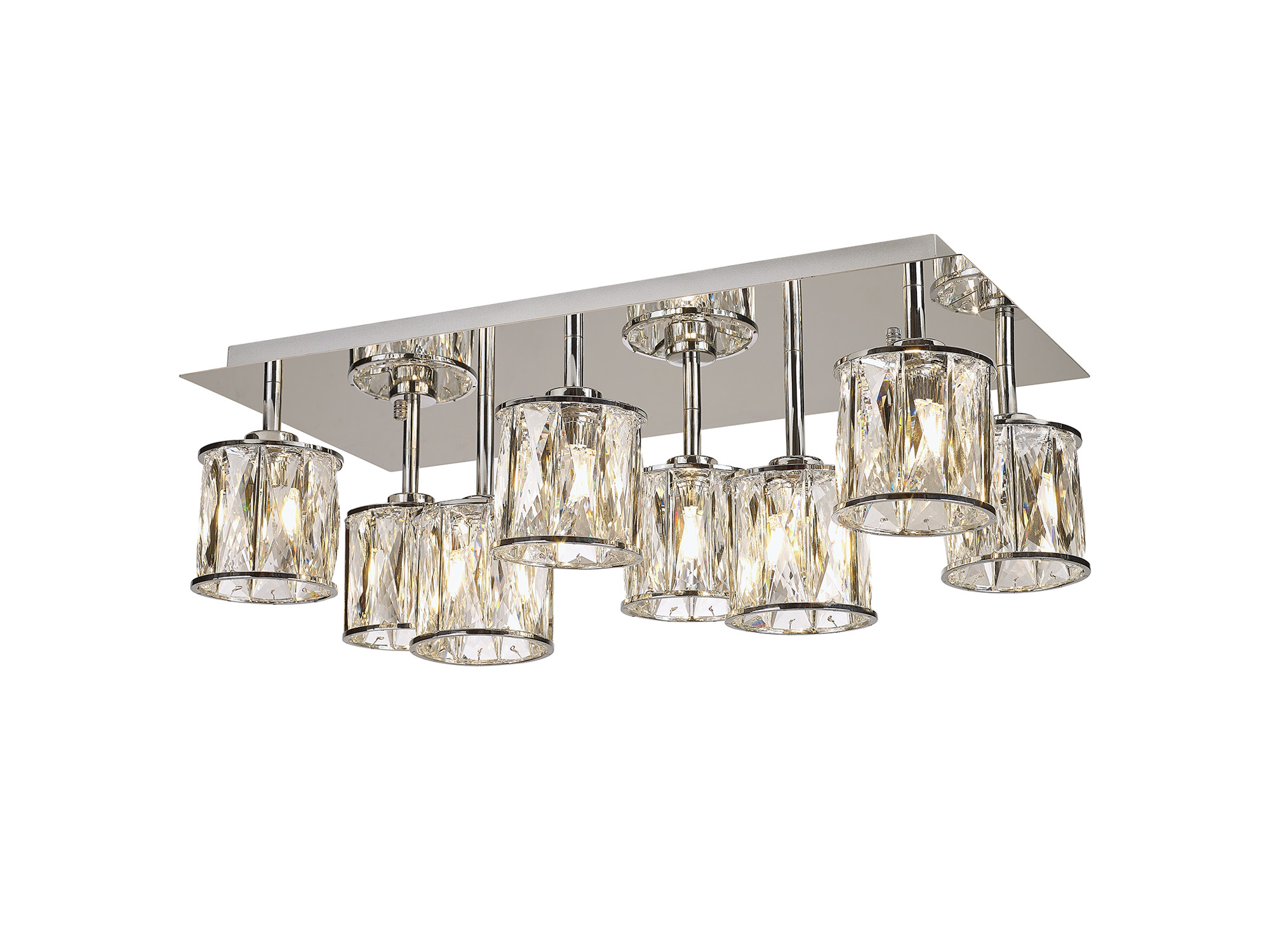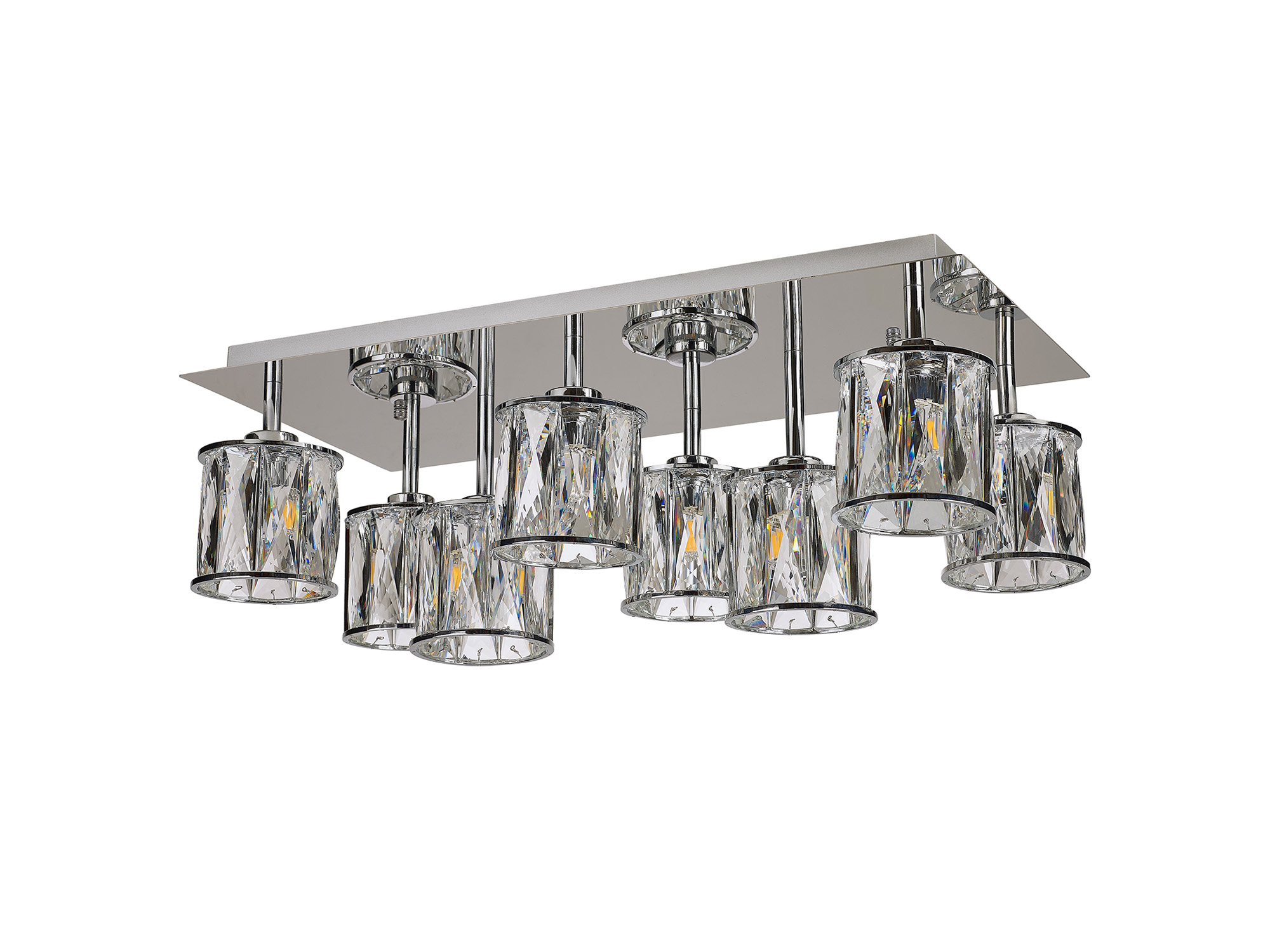 Flush 8 Light Chrome Ceiling Light, finished in chrome with crystal shades.