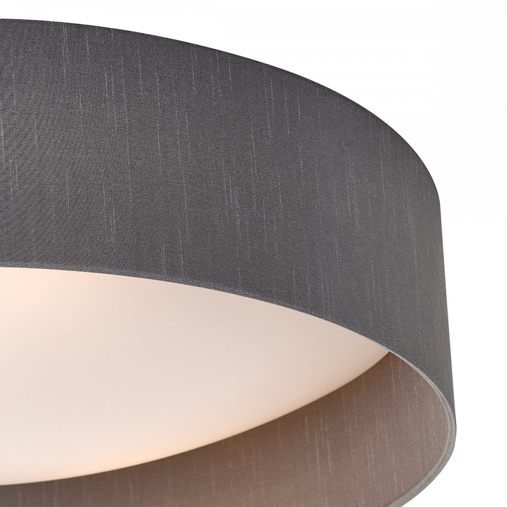 The DSYN10489 flush ceiling light with grey faux silk shade and polycarbonate diffuser offers a bright even non glaring light with the addition of a fabric shade to offer more homely look for a flush light. The fabric colour matches that of our Ronda range of ceiling lights and wall lights.