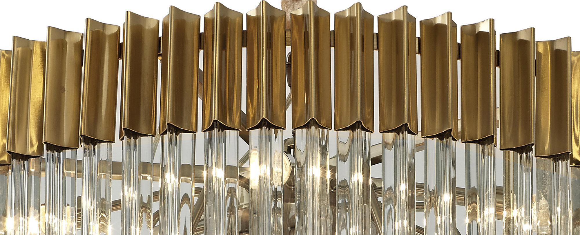 The shard collections initial release has been so overwhelming that the collection has now been extensively expanded to meet a wider range of specification needs. This contemporary design which originally combined a traditional brass finish with clear crystal glass pieces,