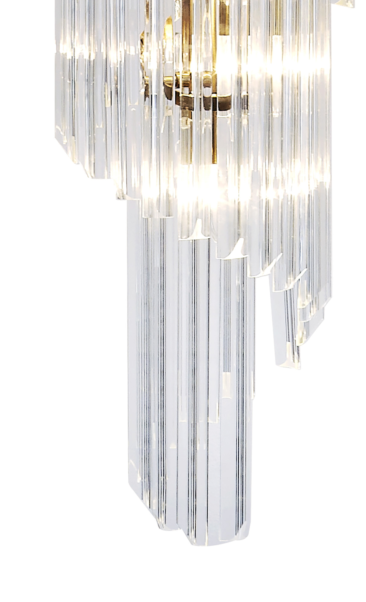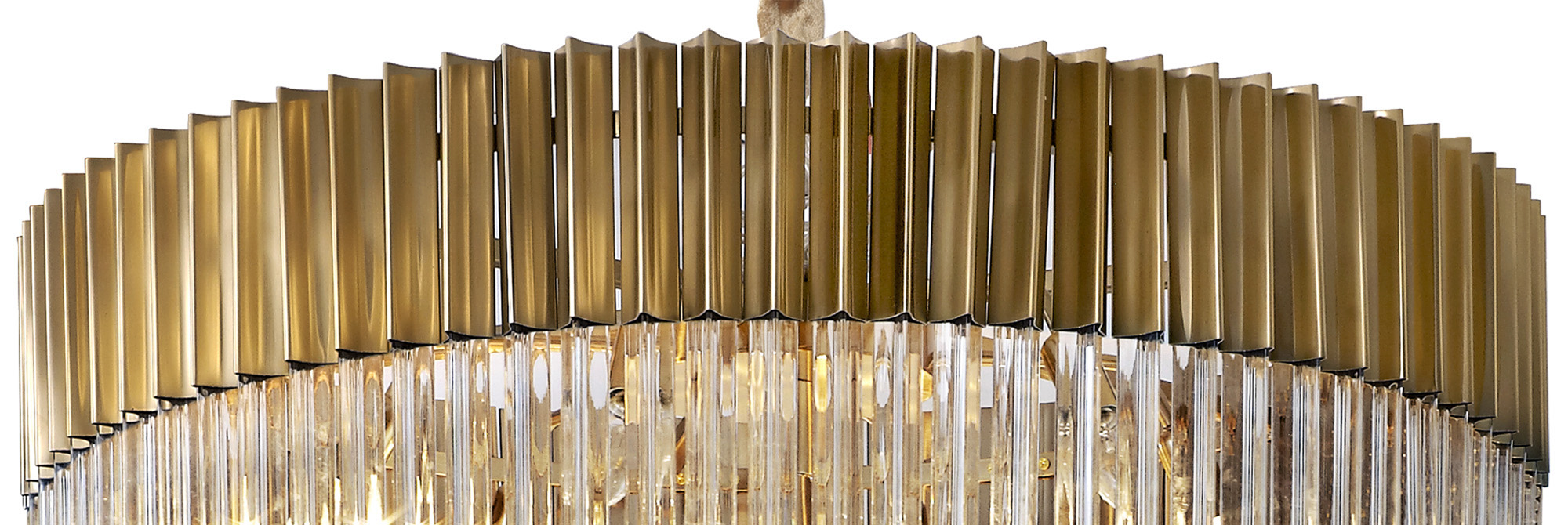 The shard collections initial release has been so overwhelming that the collection has now been extensively expanded to meet a wider range of specification needs. This contemporary design which originally combined a traditional brass finish with clear crystal glass pieces,