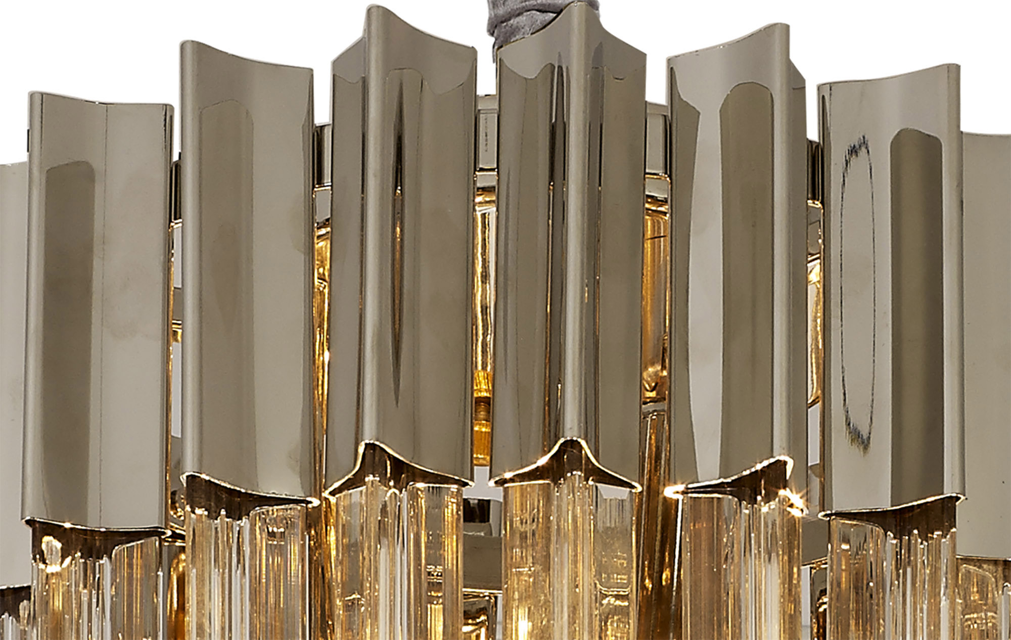The shard collections initial release has been so overwhelming that the collection has now been extensively expanded to meet a wider range of specification needs. This contemporary design which is finished in polished nickel with clear crystal glass pieces,