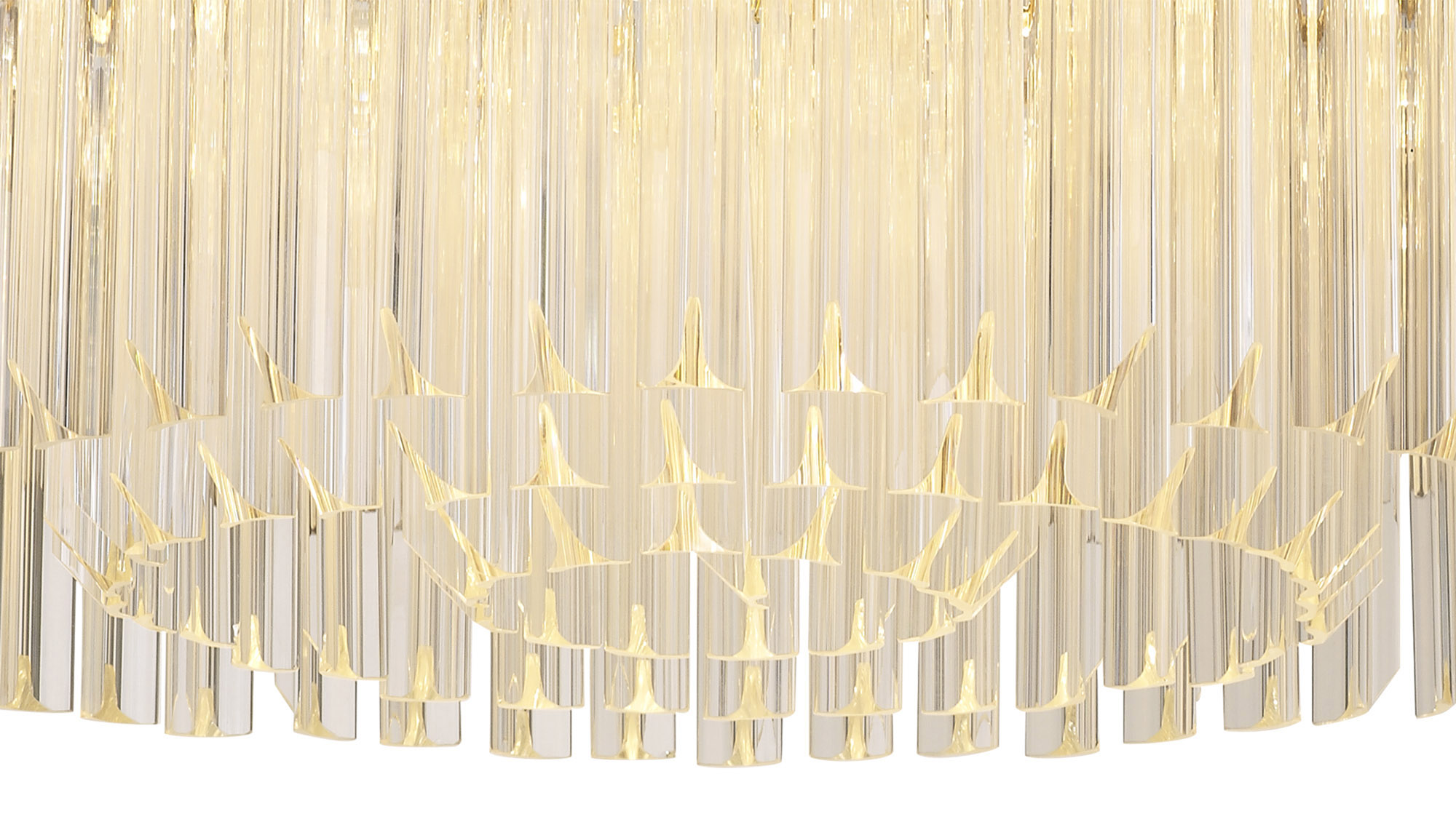 The shard collections initial release has been so overwhelming that the collection has now been extensively expanded to meet a wider range of specification needs. This contemporary design which originally combined polished nickel finish with clear crystal glass pieces,