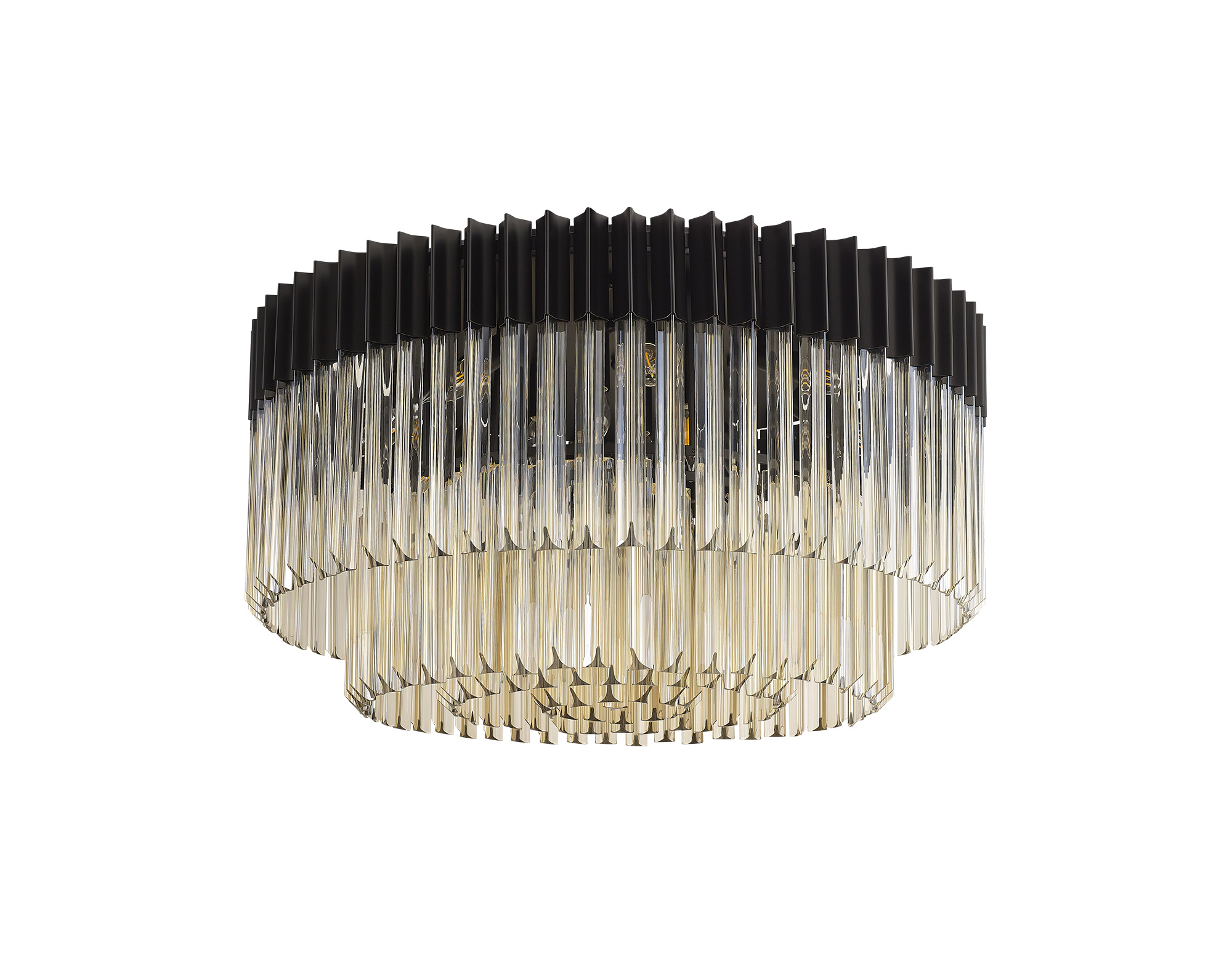 400554 Shard 12 Light Matt Black with Cognac Glass Flush Ceiling Light 80cm