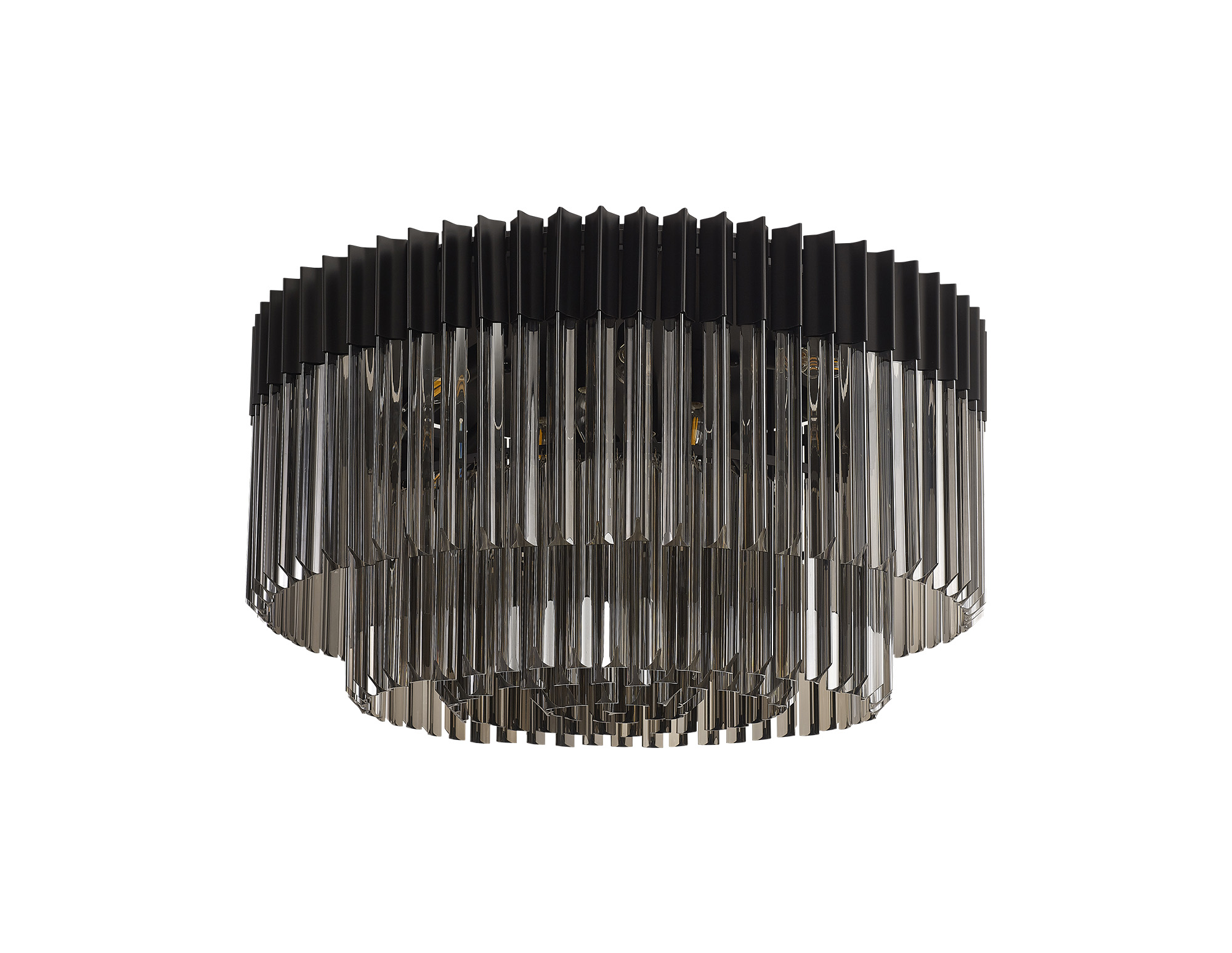 400555 Shard 12 Light Matt Black & Smoked Glass Flush Ceiling Light