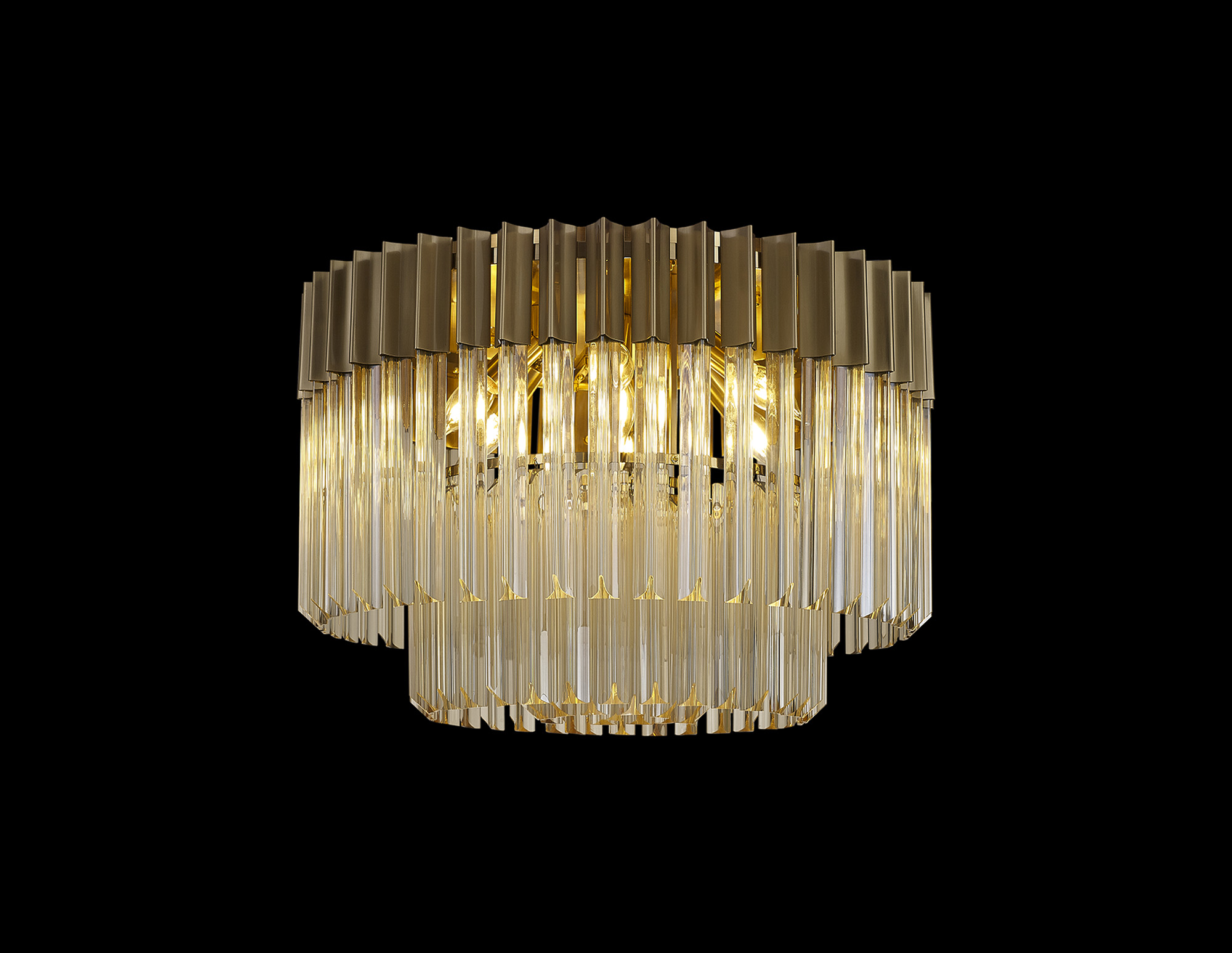 The shard collections initial release has been so overwhelming that the collection has now been extensively expanded to meet a wider range of specification needs. This contemporary design which originally combined a traditional brass finish with cognac crystal glass pieces,