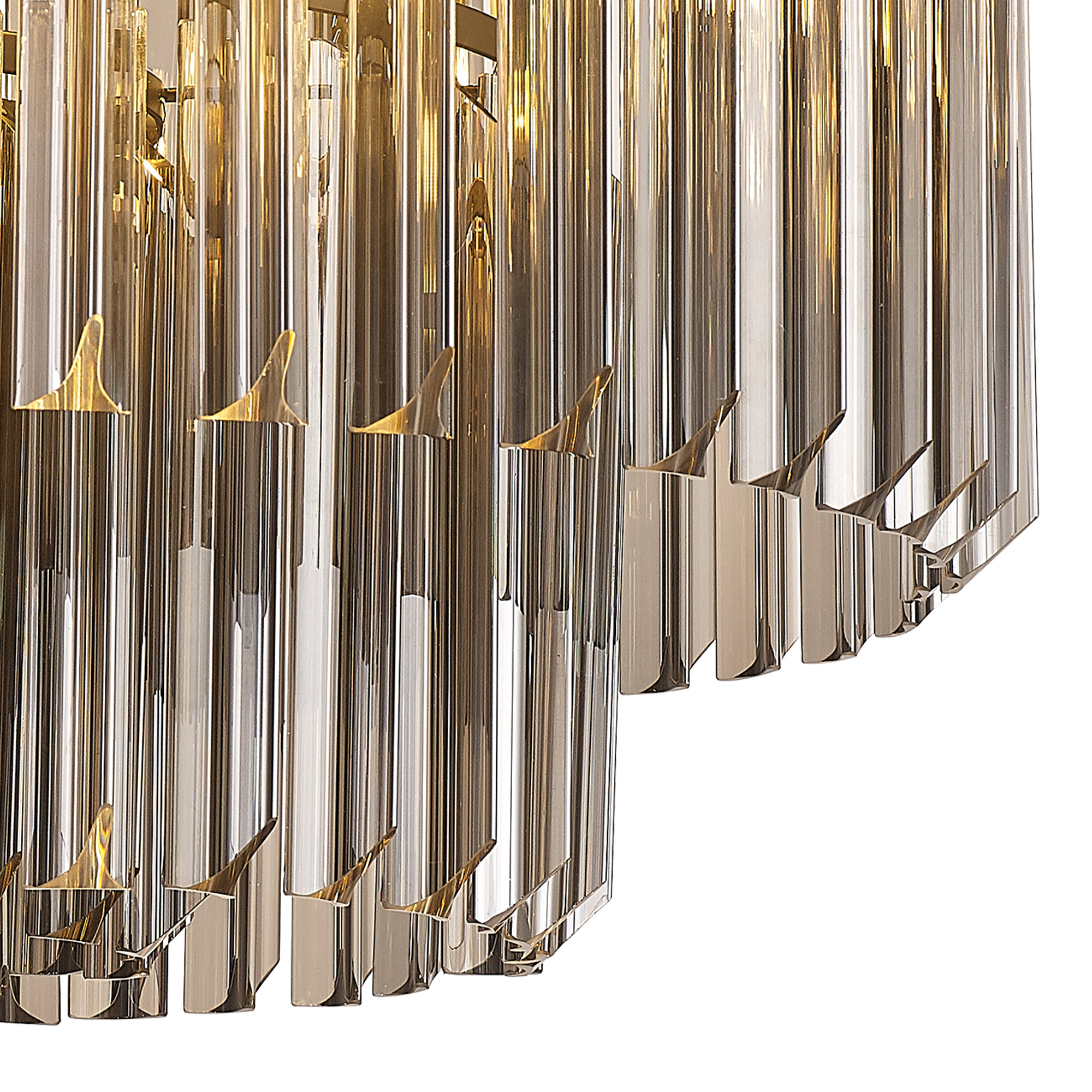 The shard collections initial release has been so overwhelming that the collection has now been extensively expanded to meet a wider range of specification needs. This contemporary design which originally combined Matt Black metal with Smoked crystal glass pieces,