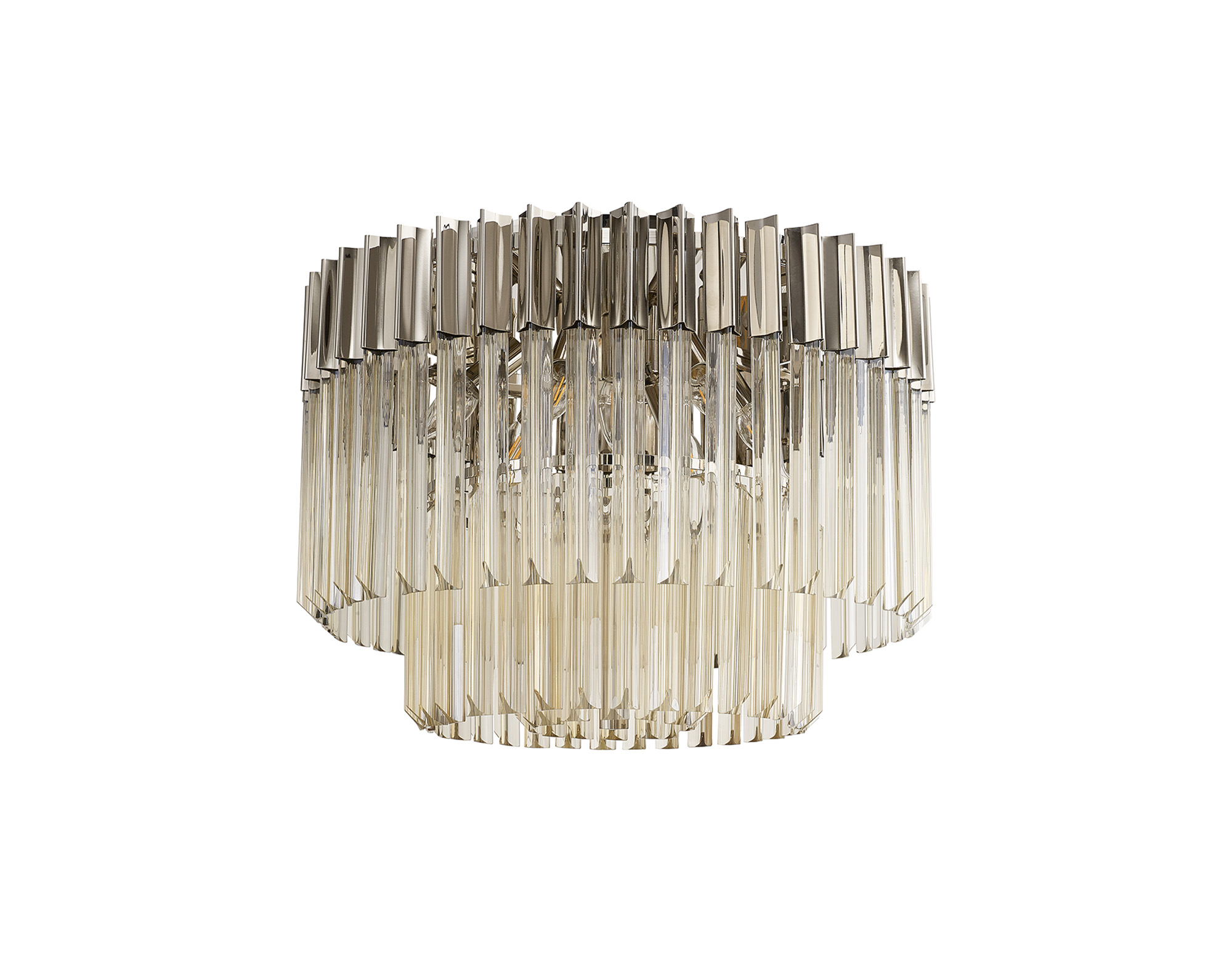 400576 Shard 60cm Polished Nickel with Cognac Glass Flush Ceiling Light
