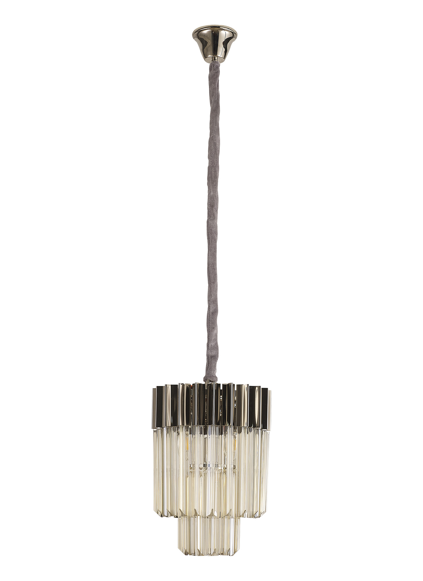The shard collections initial release has been so overwhelming that the collection has now been extensively expanded to meet a wider range of specification needs. This contemporary design which is finished in polished nickel with cognac crystal glass pieces,