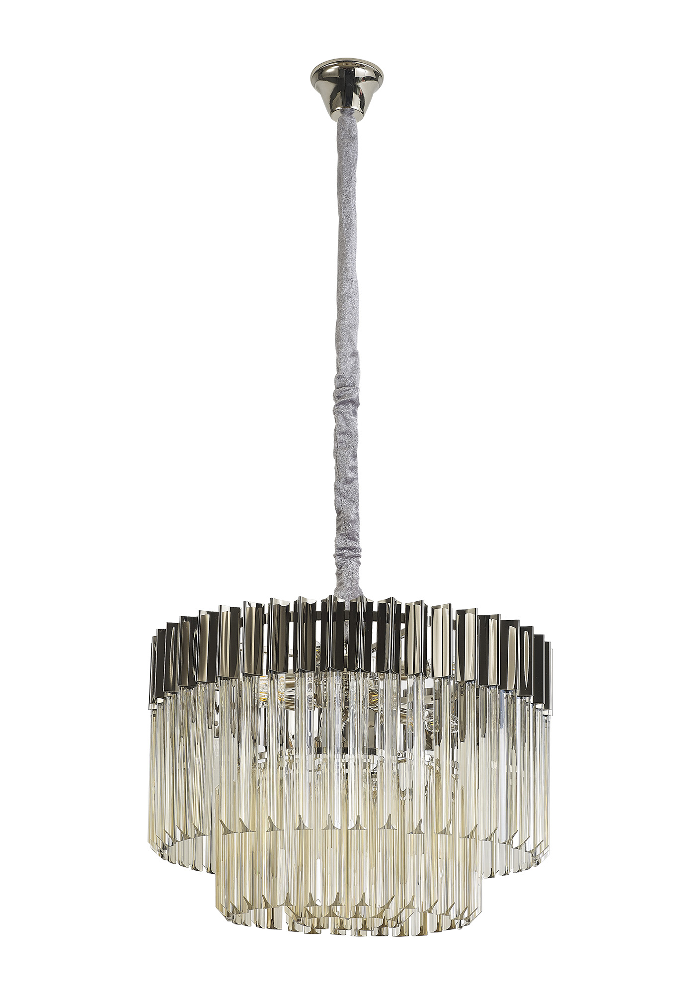 400656 Shard 8 Light pendant Polished Nickel with Cognac Glass