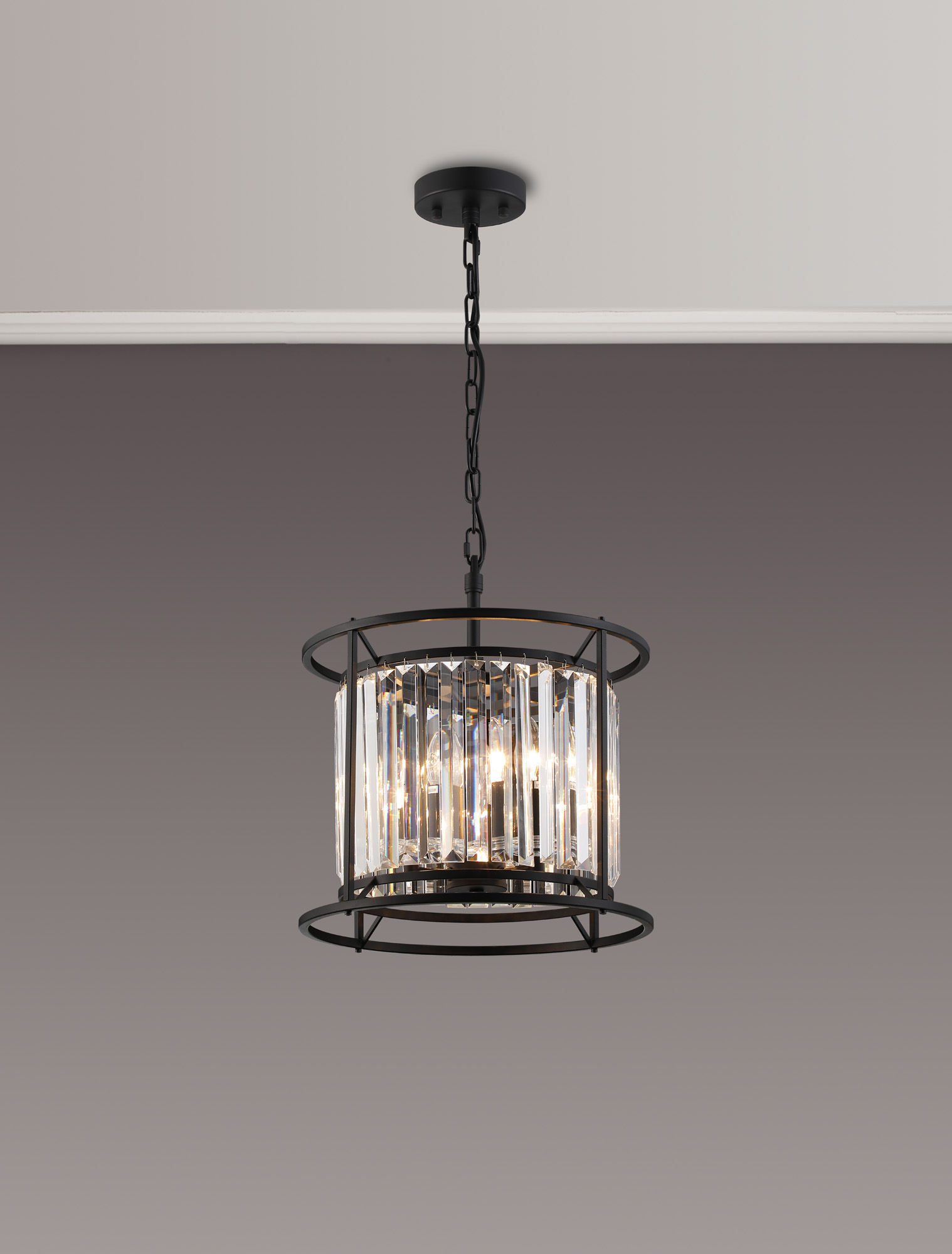 400792 Charles 3 Light Crystal Pendant/Semi Flush Light Satin Black