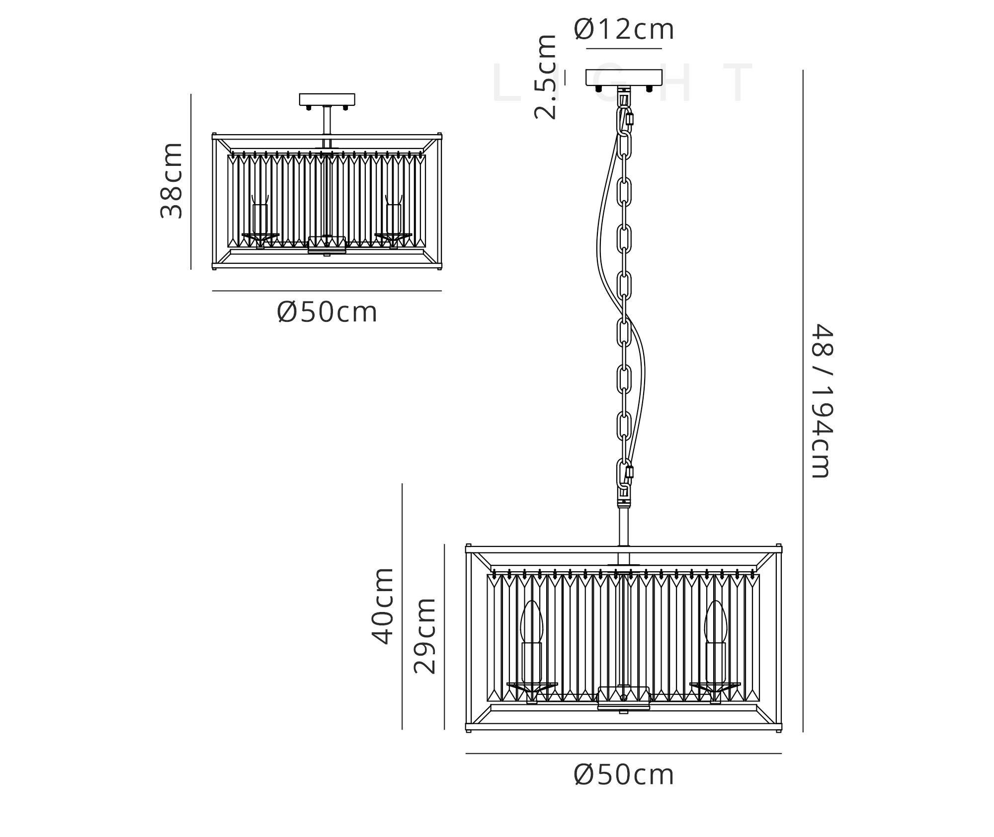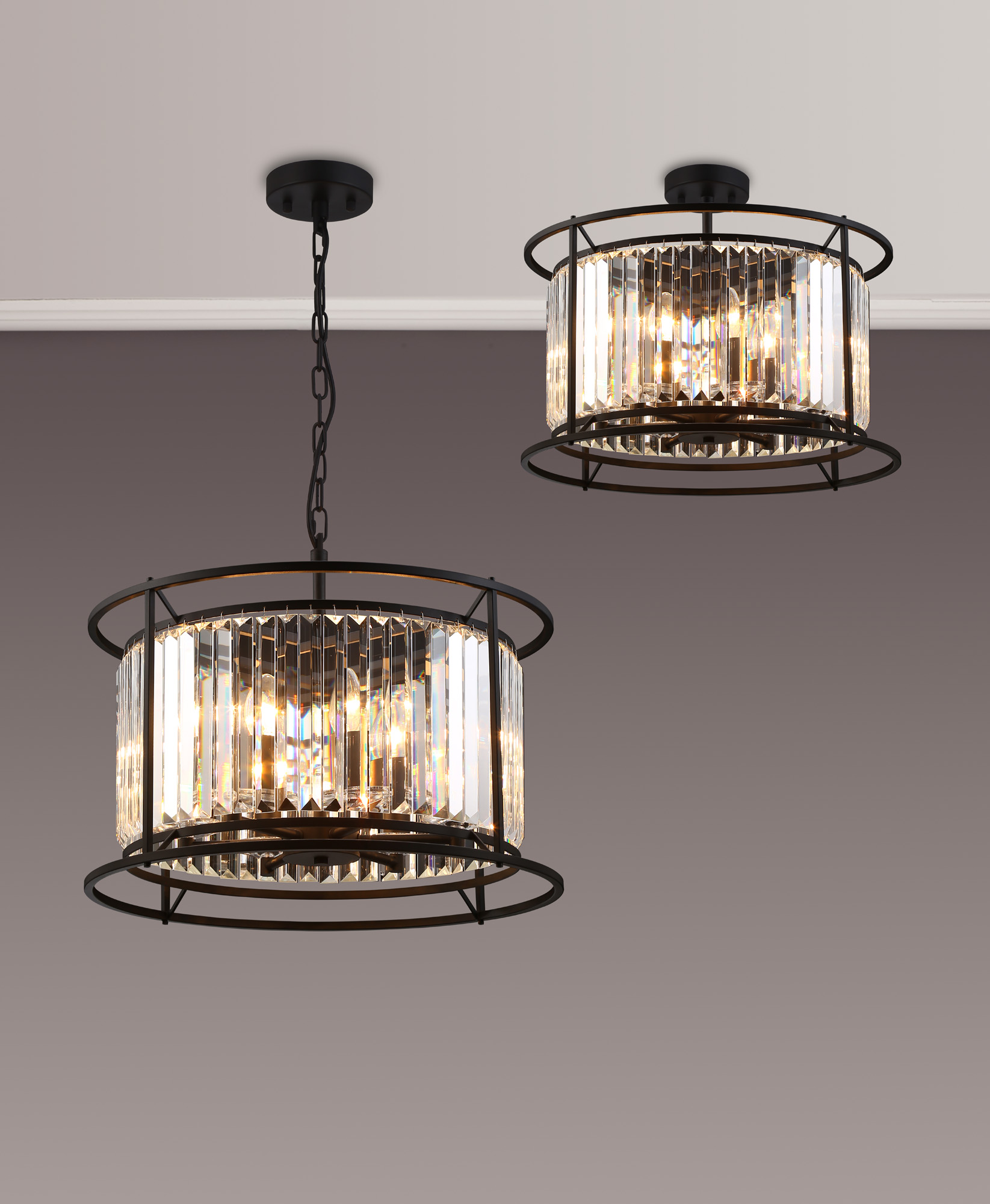400793 Charles 50cm Crystal Pendant/Semi Flush Light Satin Black