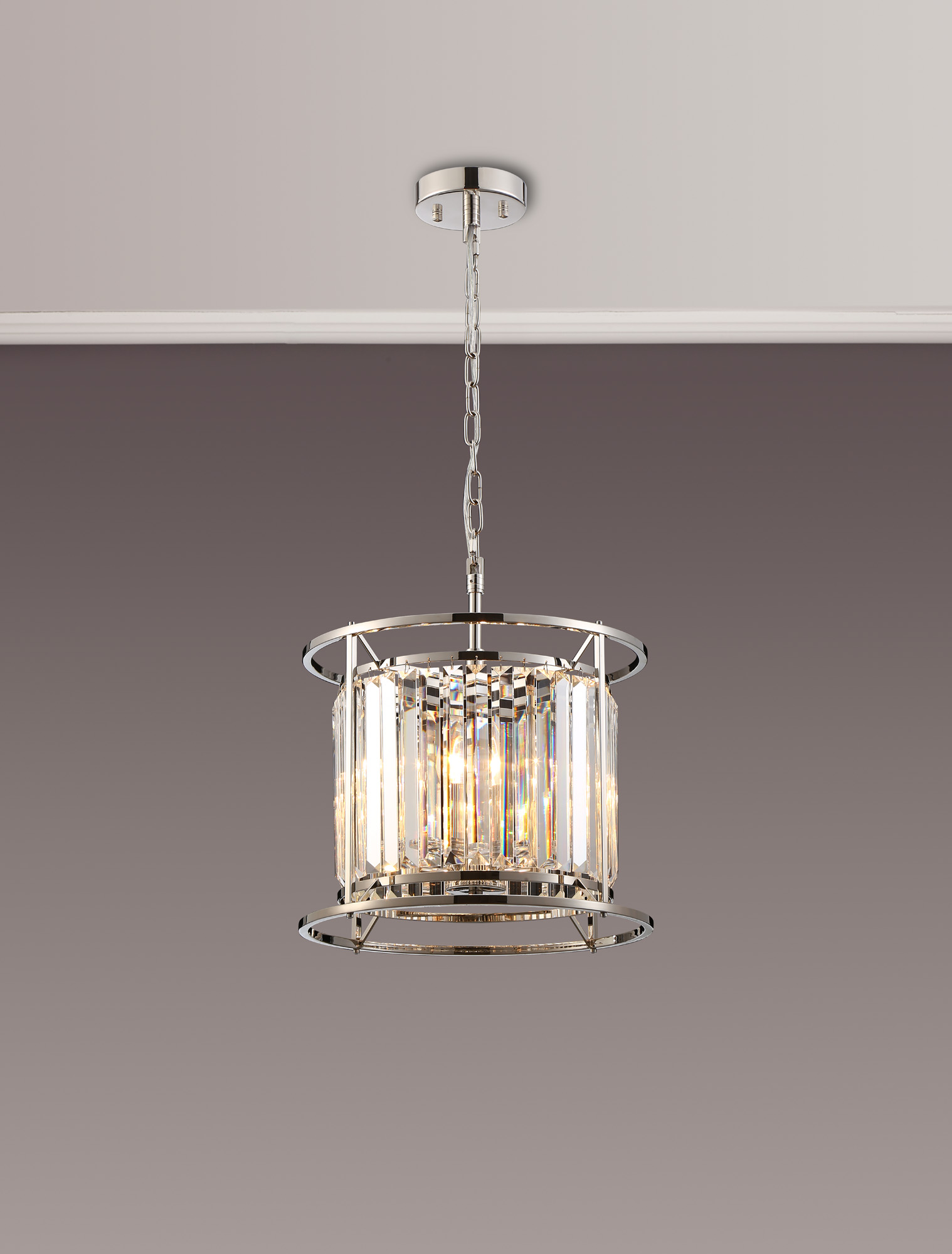 400802 Charles 3 Light Crystal Pendant/Semi Flush Light Polished Nickel