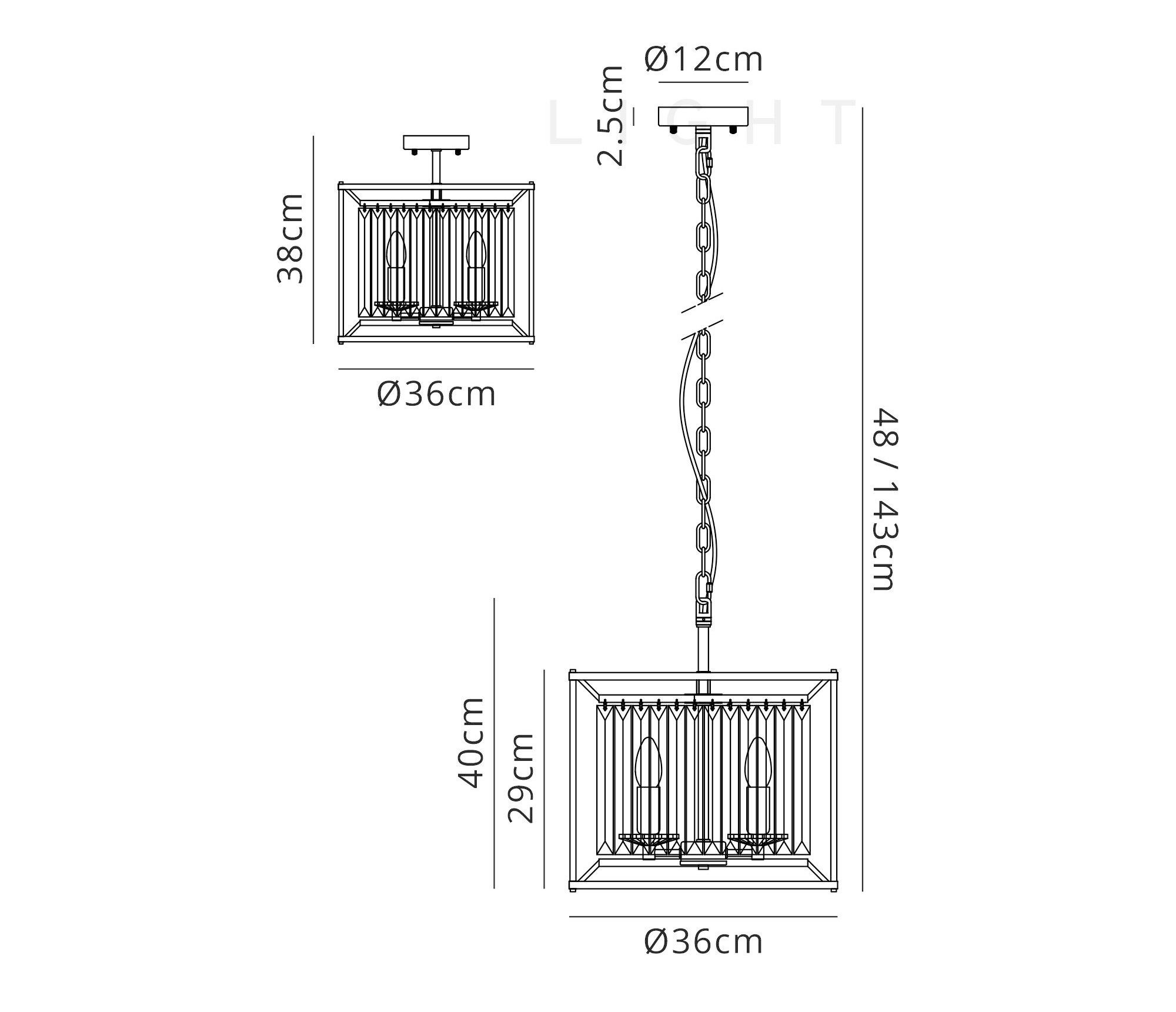 Height: Semi Flush 38cm or as Pendant min 48cm max 143cm