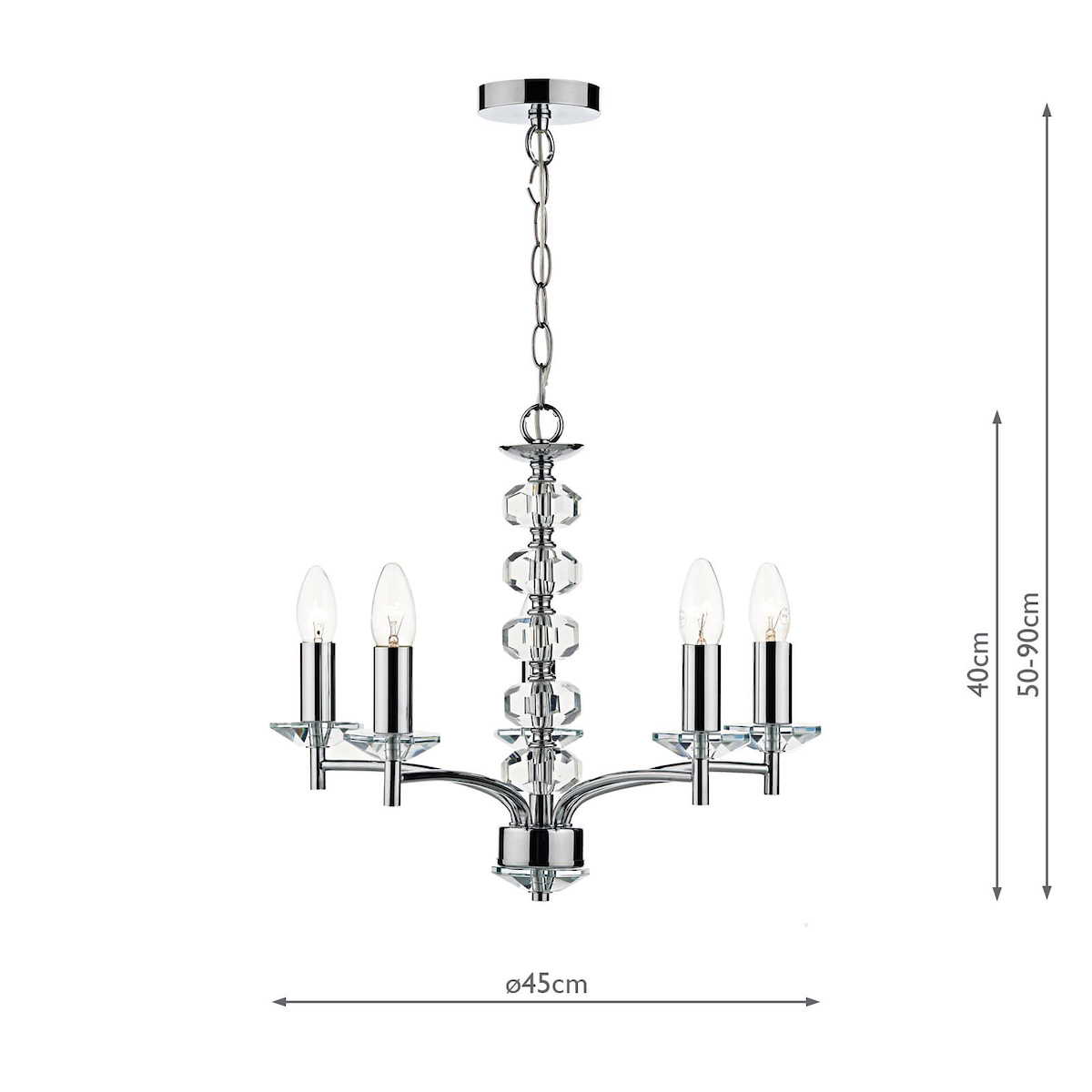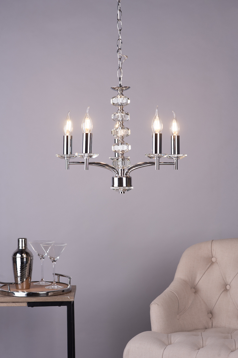 DELO100550 Yelo 5 Light Crystal Pendant chrome