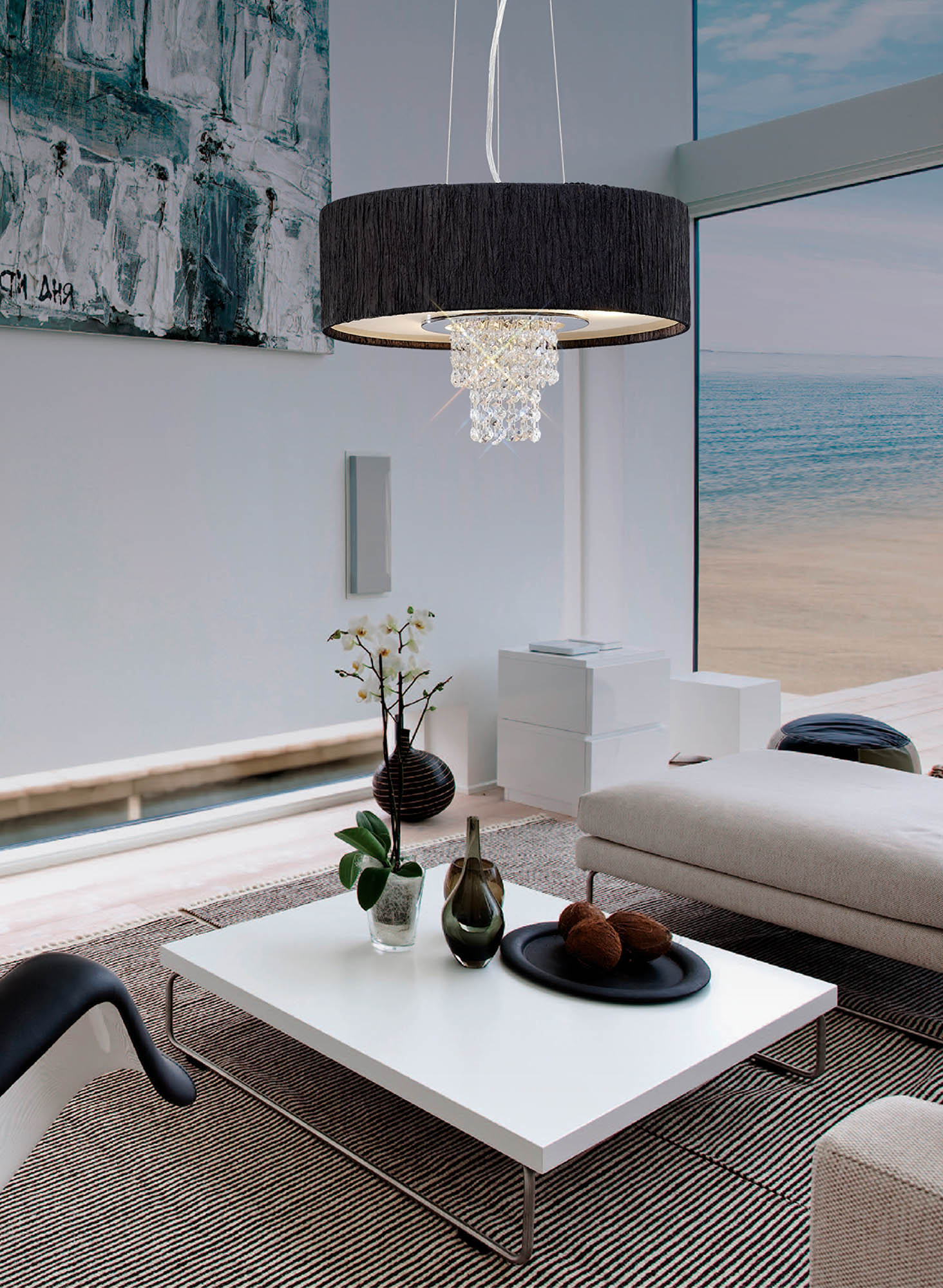 A gorgeous suit of pendants with a matching wall fitting to match. This collection brings together the use of both a traditional shade and stunning crystal for the use in many different locations. Suitable for low ceilings and hallways alike, this range can best be described as nothing more than versatile with both options of having either a Black or White shade to suit.