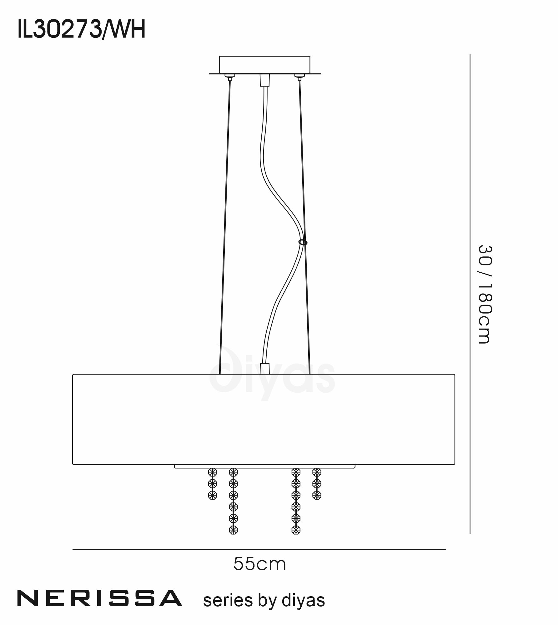 Lamp: 6 x 60w SES Candles or LED (not included)