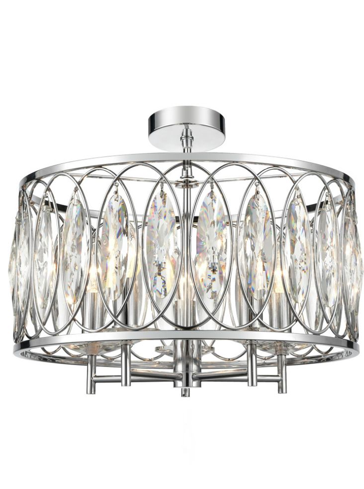 Chrome finish fitting with oval shaped crystal glass, supplied with chain but can be flushed mount (see pictures)