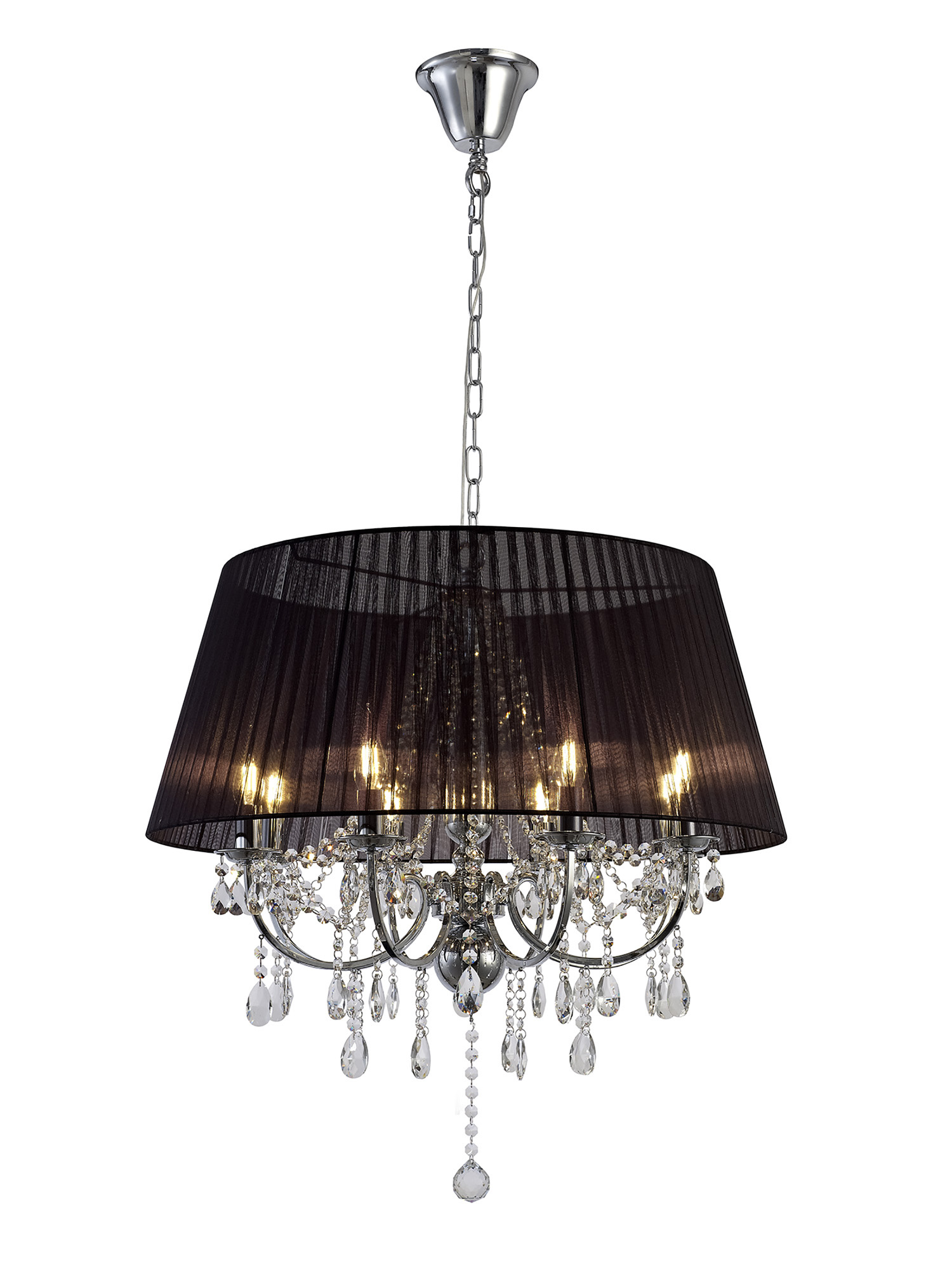 1530056BL 8 Light Chrome & Crystal pendant Black shade