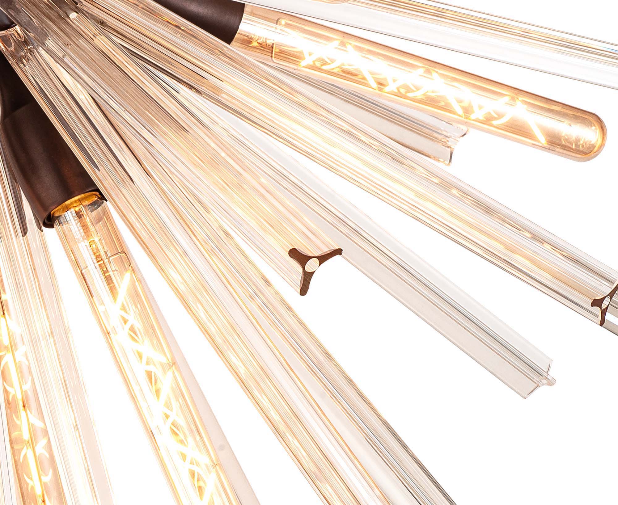 The Cleo collection presents an intriguing glass shape moulded into a three dimensional triquetra. The grooves along each sized glass create an appealing optical effect which is effortlessly enhanced with the use of tubular lamps.