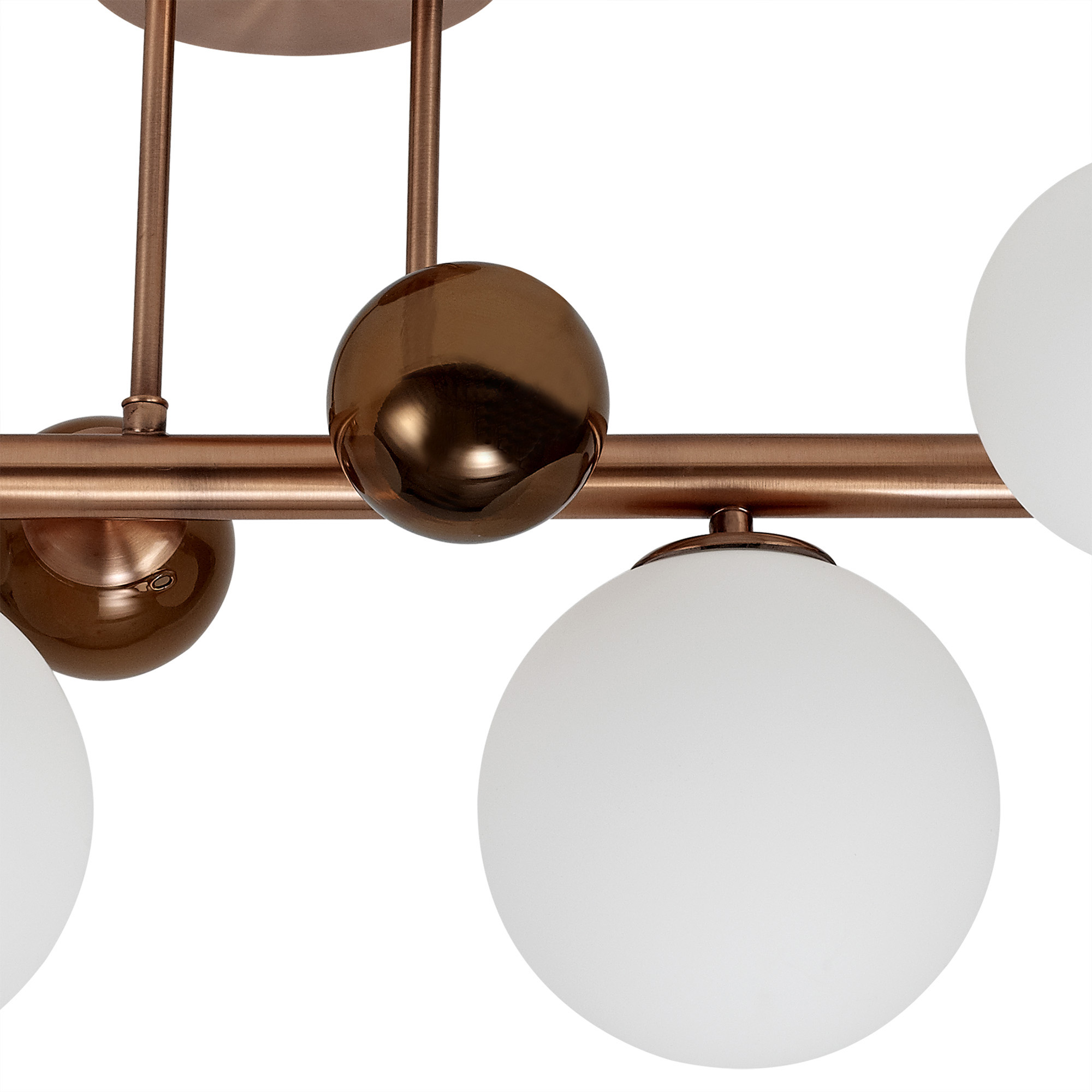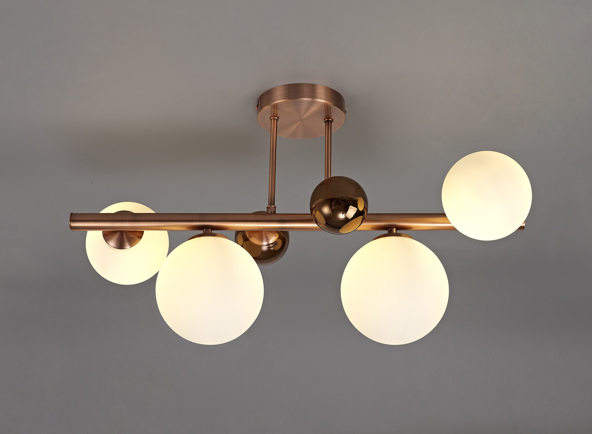 The Moon range has a Antique Copper Framework with a collection of different sized glass spheres in Opal & Copper Glass