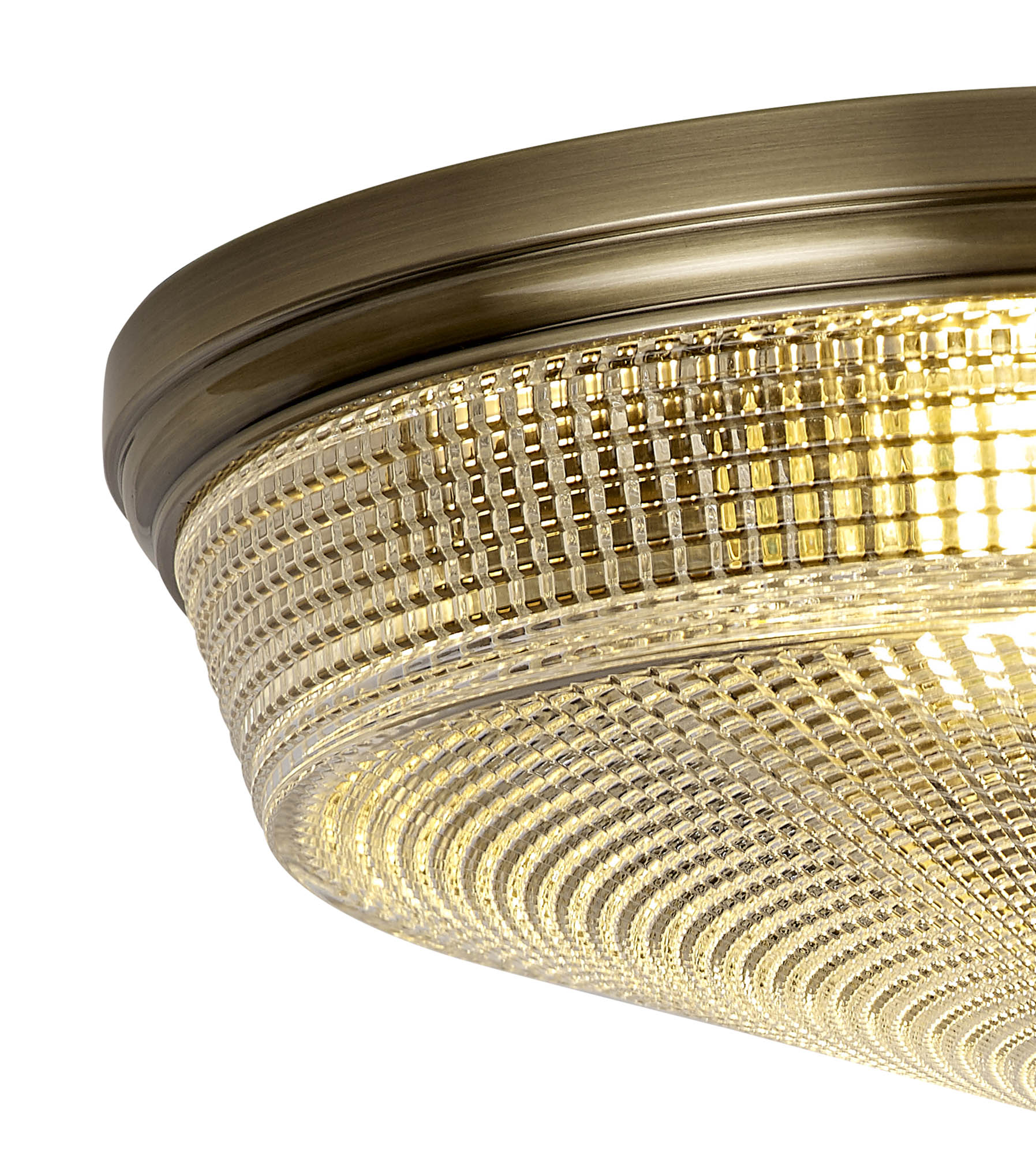 The textured prismatic glass featured on each lighting source not only gives an appealing visual when the lights are not in use but also a dazzling effect when illuminated by the wide number of lamps available for use in each fitting.