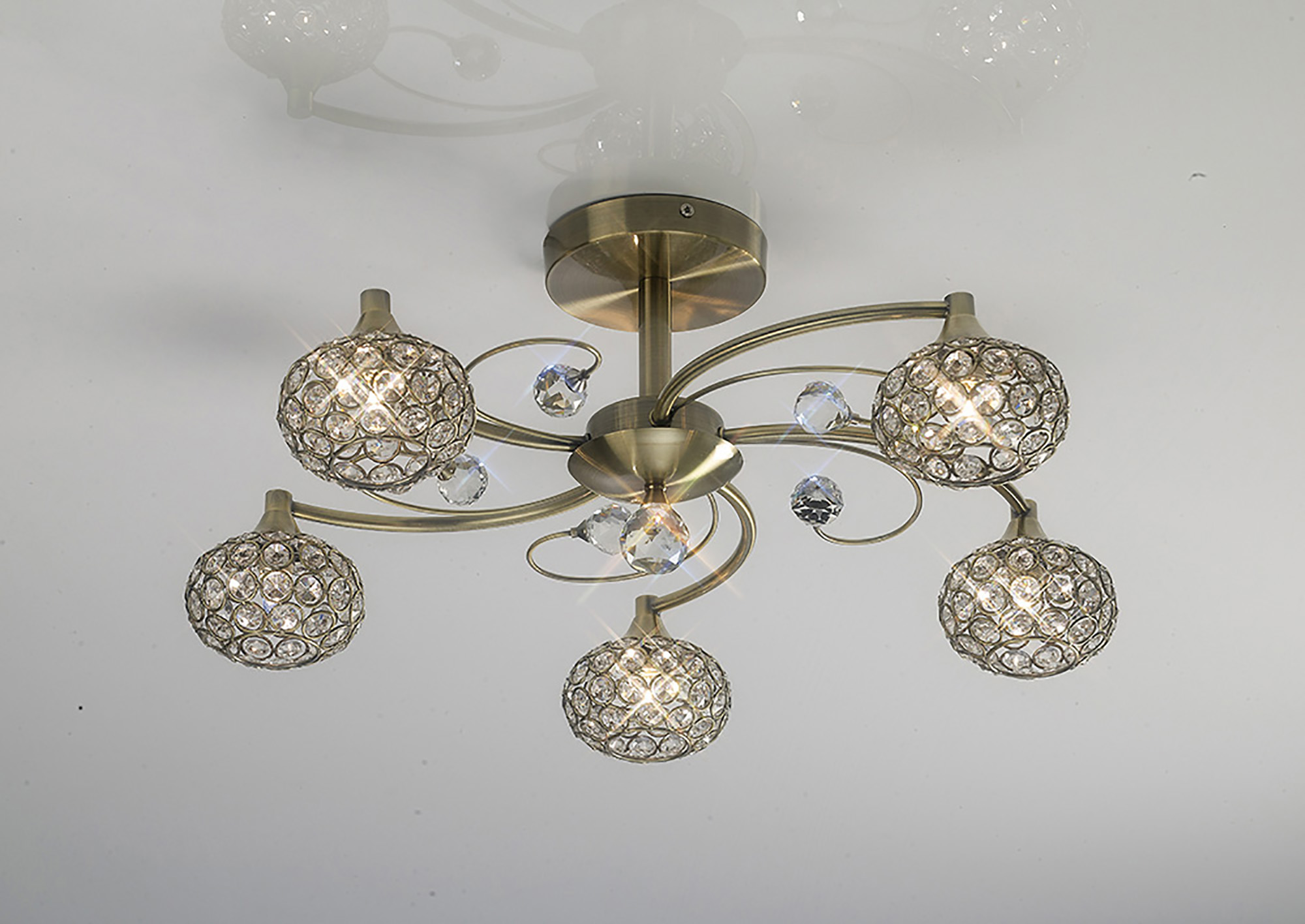 1530945 Carm 5 Light Semi-Flush Ceiling Light Antique Brass