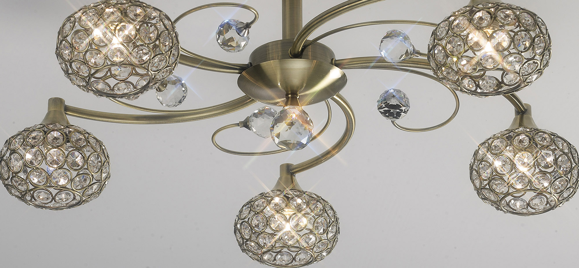 This suite of products has been carefully designed to ensure the wow factor is not impossible just because of low ceilings. The matt finish of Satin Nickel or Antique Brass with the sparkle of the clear crystal is a combination that looks impressive. These items certainly offer the wow factor without disrupting the bank. full range available from 3 light to 8 light versions as well as single wall light