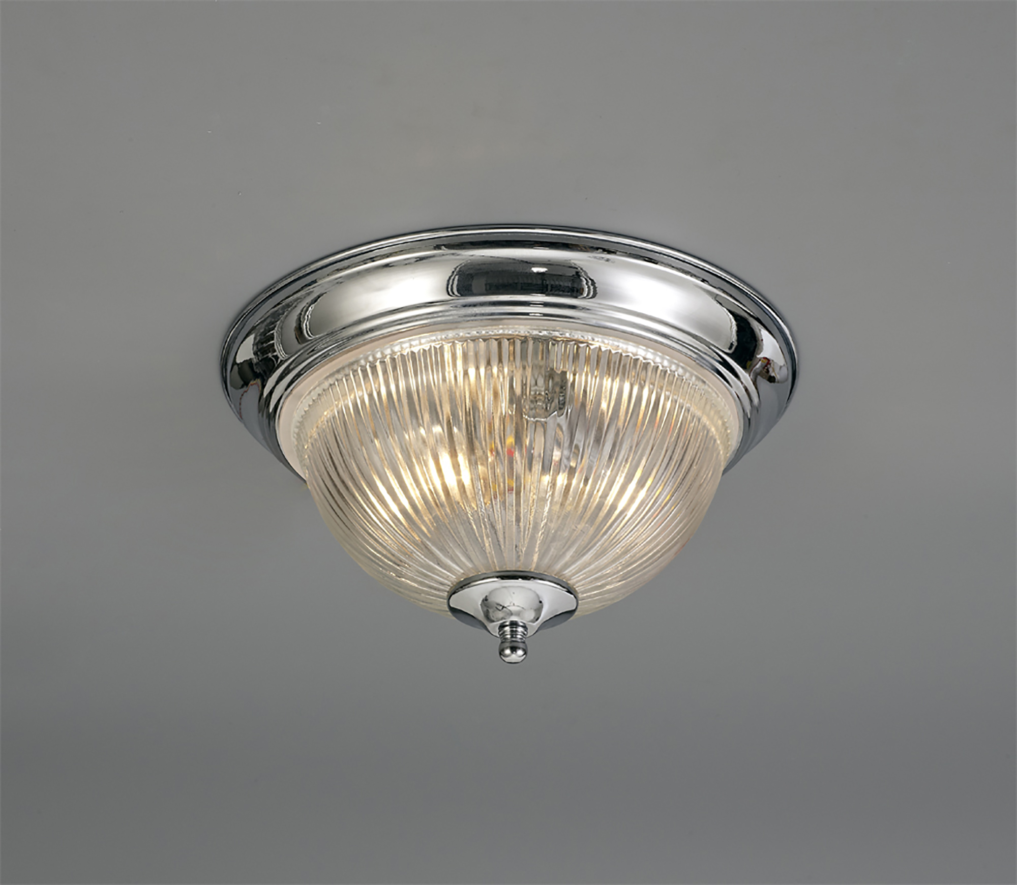 Flush Polished Chrome Ceiling With Ribbed Glass, ideal for hallway, cloak rooms or bathroom lighting,