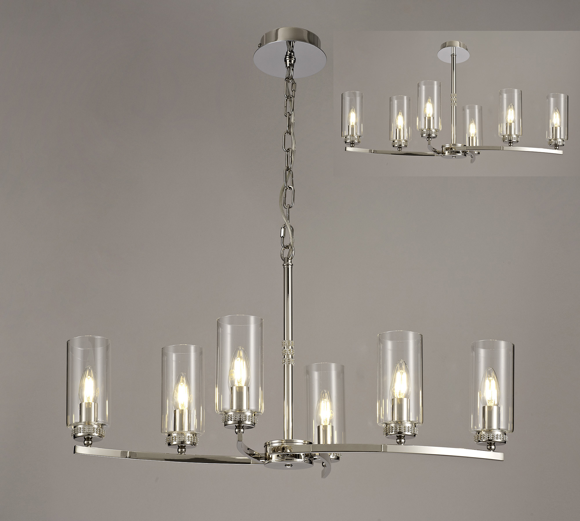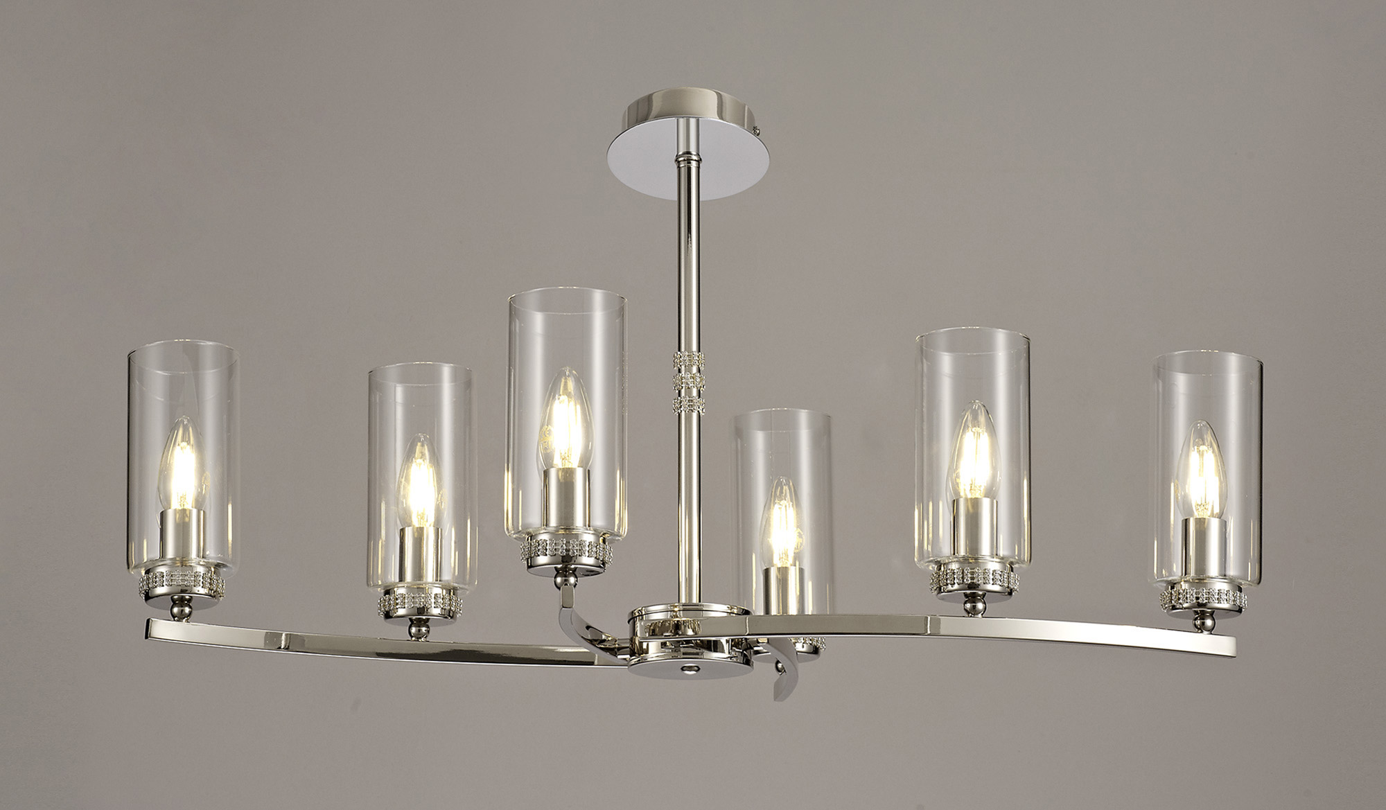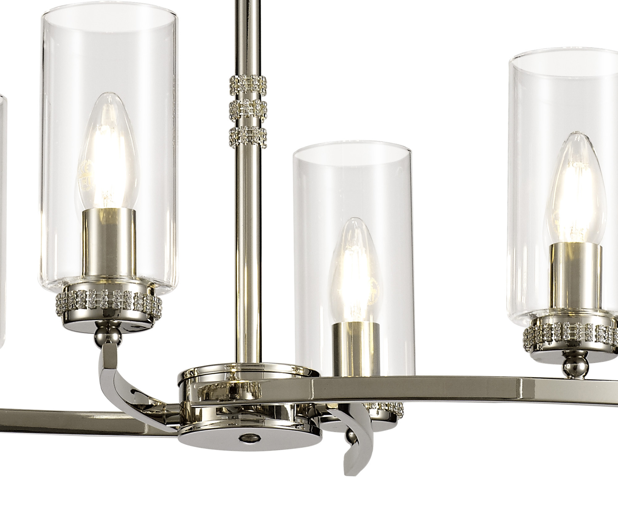 A beautiful range with Polished Nickel frame and clear glass tubes with crystal detail.