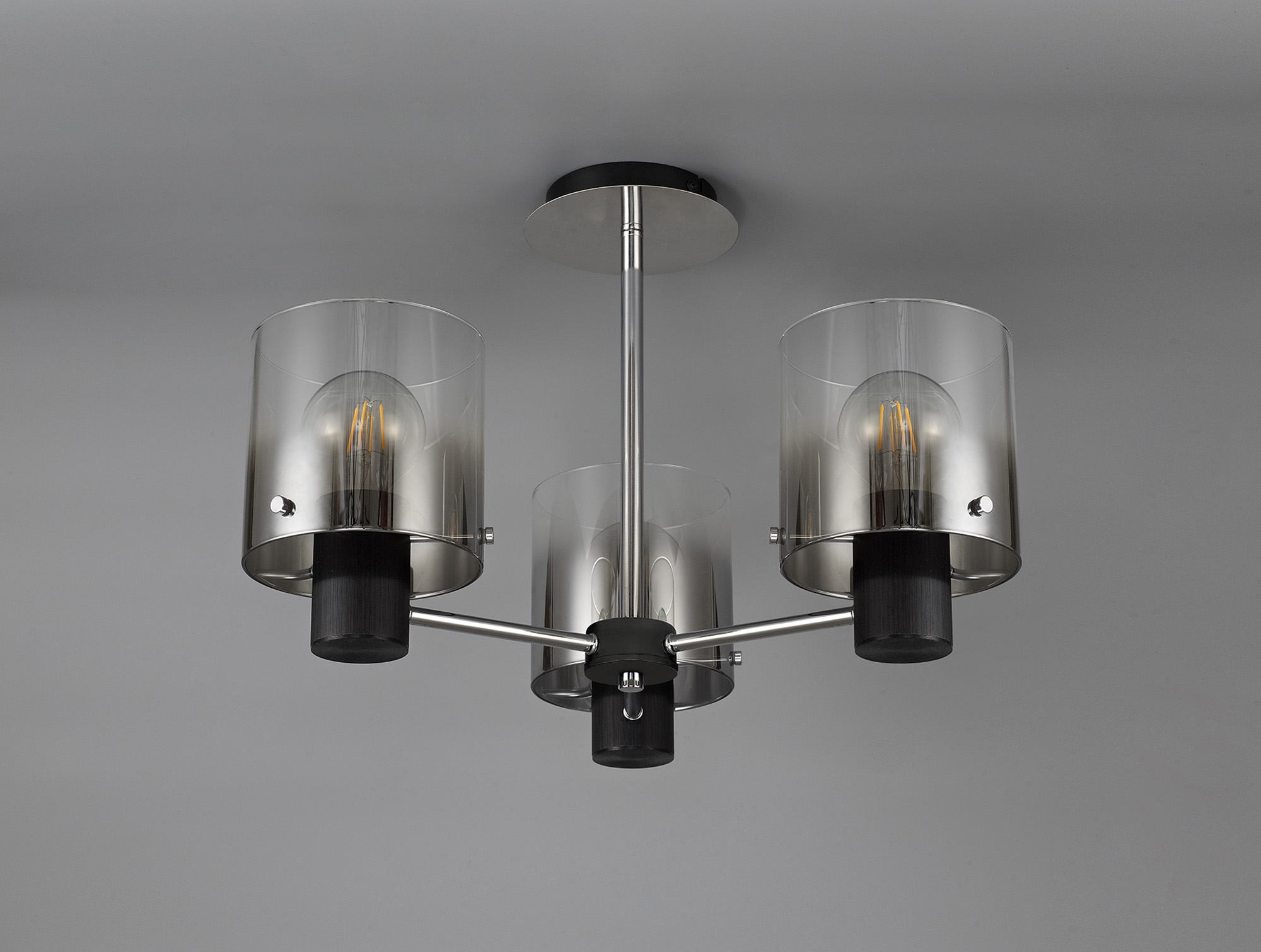 In keeping with our reputation for uncommon stand out designs, Blake capitalises on the intriguing ombré effect by applying the finish to substantial smoked to black glass cylinders which sit around the E27 lampholders. Due to the initial overwhelming success this range has been expanded and the feature has been used to manufacture a wider range of ceiling lights, pendants and complementing wall and table lamp now