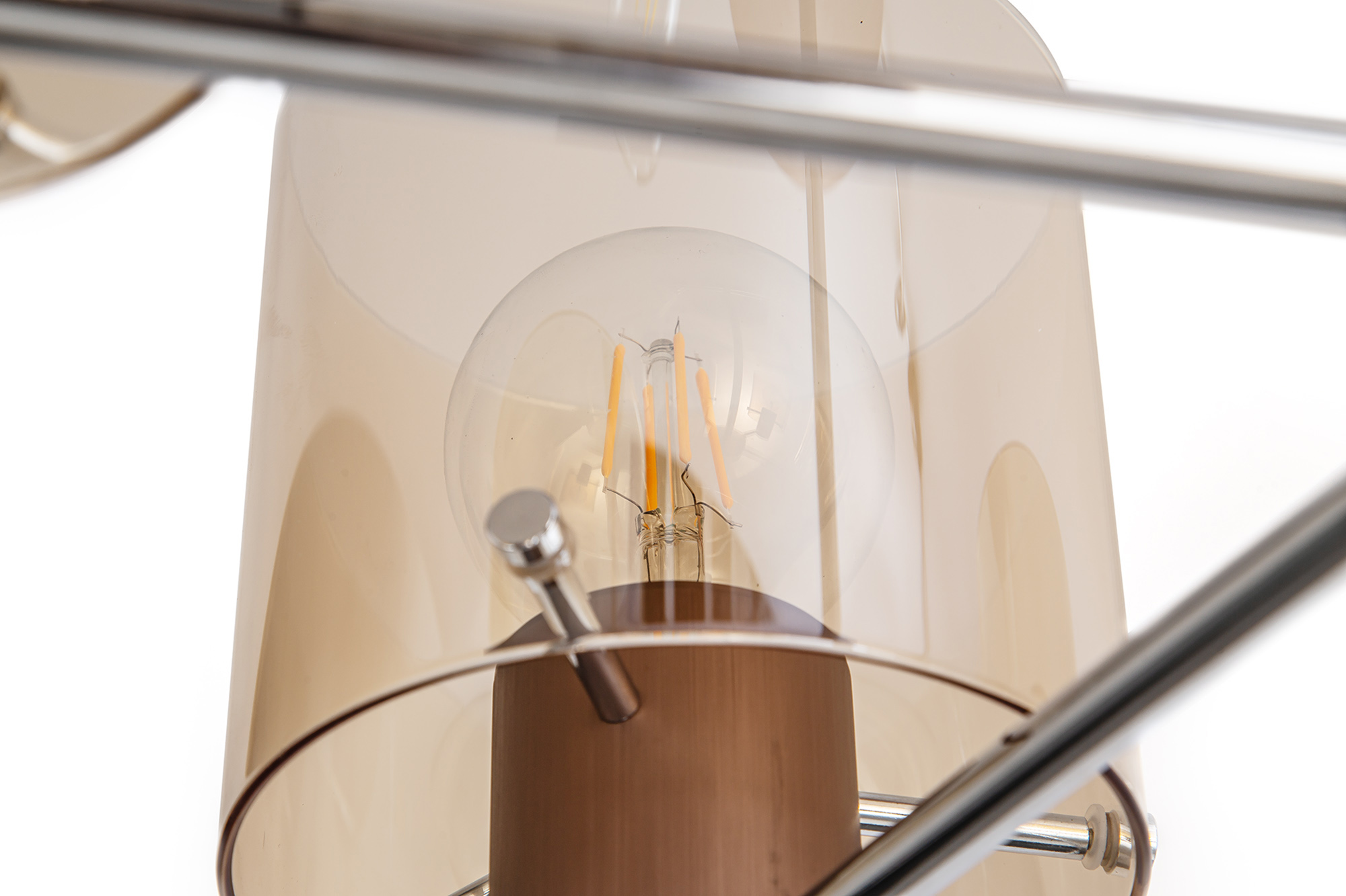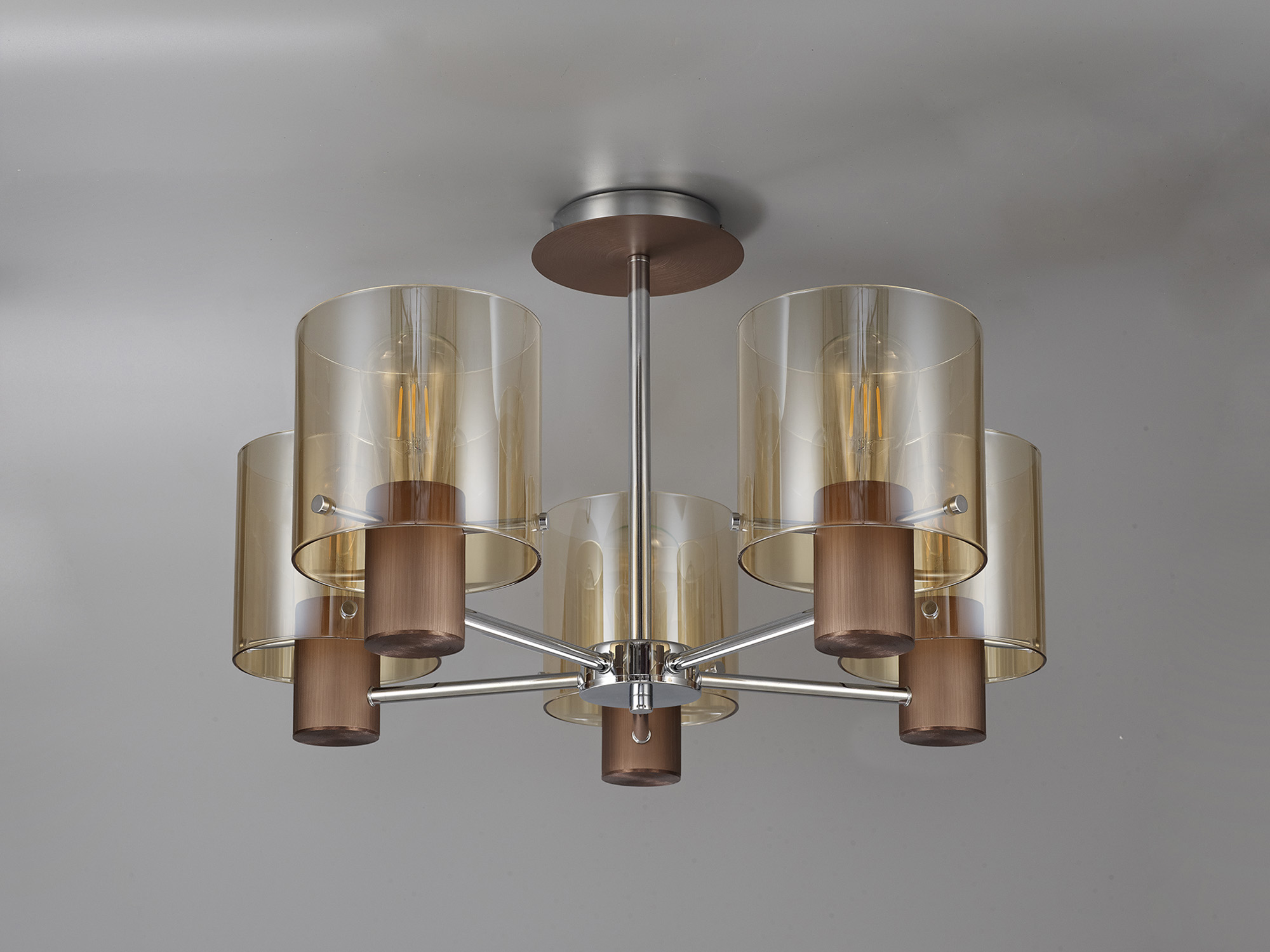 In keeping with our reputation for uncommon stand out designs, Drake capitalises on the intriguing amber effect glass by applying the finish to substantial mocha and chrome frame work. Due to the initial overwhelming success this range has been expanded and the feature has been used to manufacture a wider range of ceiling lights, pendants and complementing wall and table lamp now.