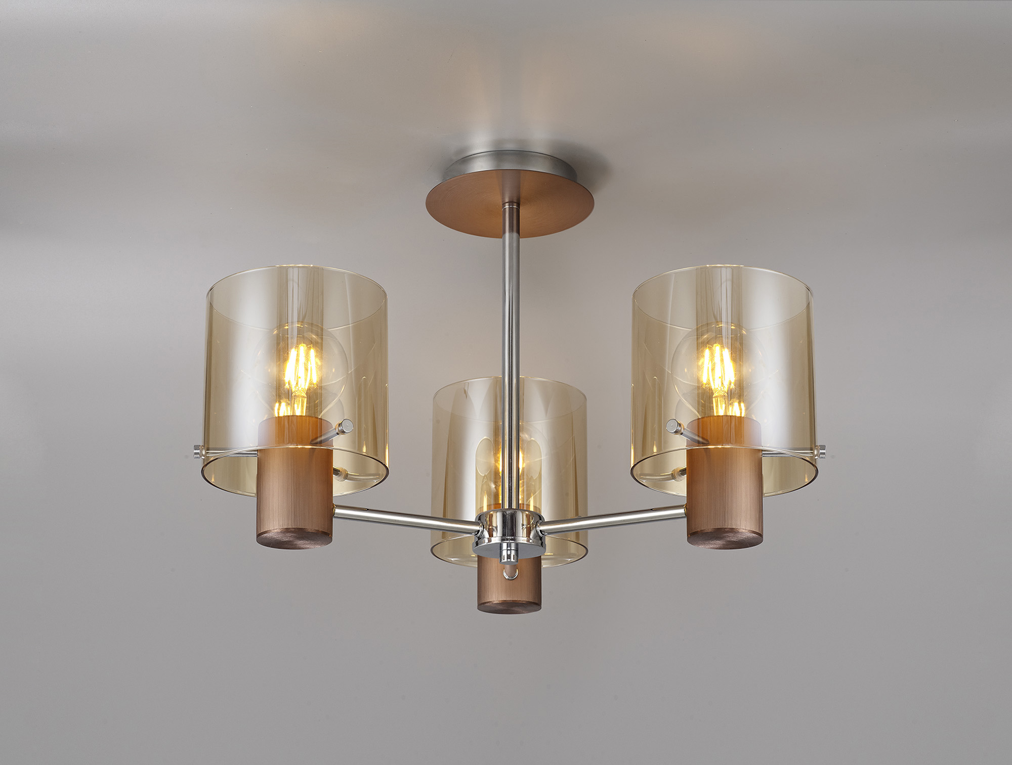 In keeping with our reputation for uncommon stand out designs, Drake capitalises on the intriguing amber effect glass by applying the finish to substantial mocha and chrome frame work. Due to the initial overwhelming success this range has been expanded and the feature has been used to manufacture a wider range of ceiling lights, pendants and complementing wall and table lamp now.