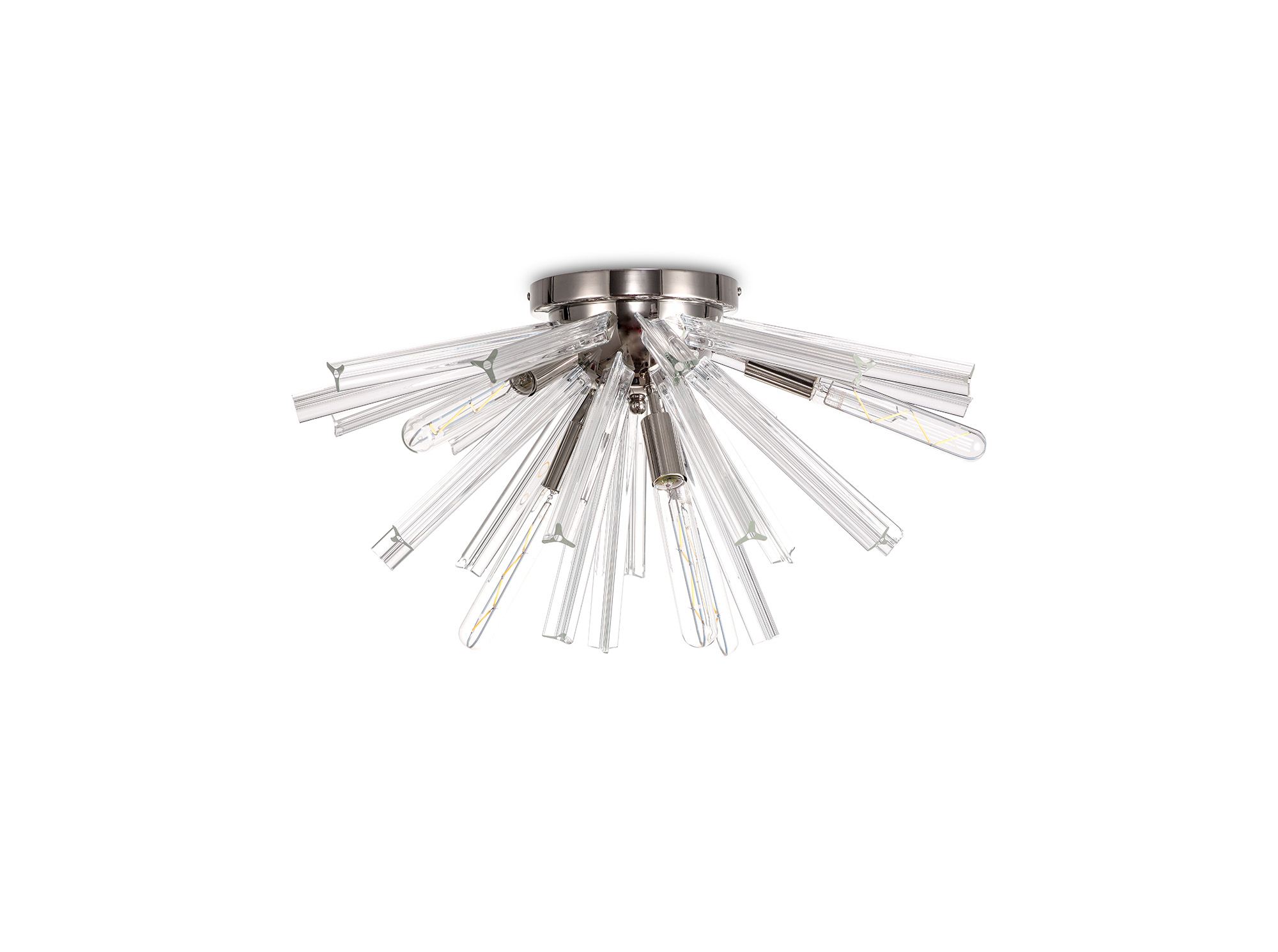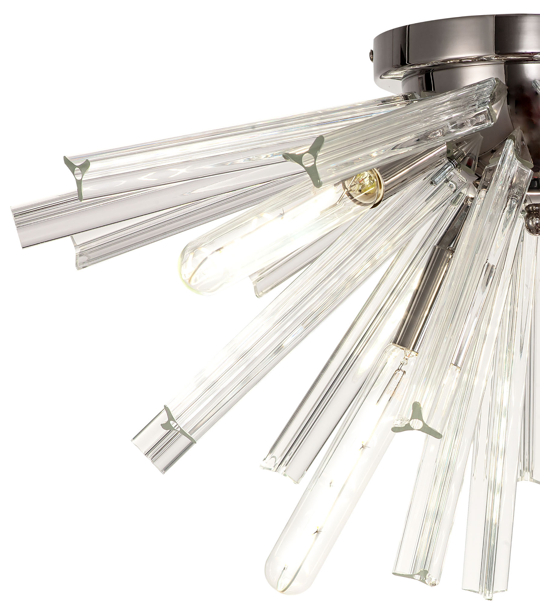 The Cleo collection presents an intriguing glass shape moulded into a three dimensional triquetra. The grooves along each sized glass create an appealing optical effect which is effortlessly enhanced with the use of tubular lamps.