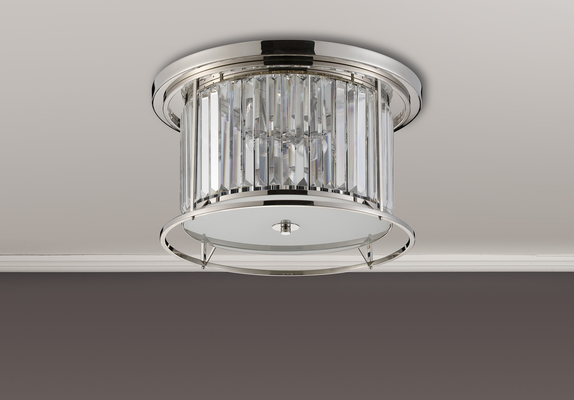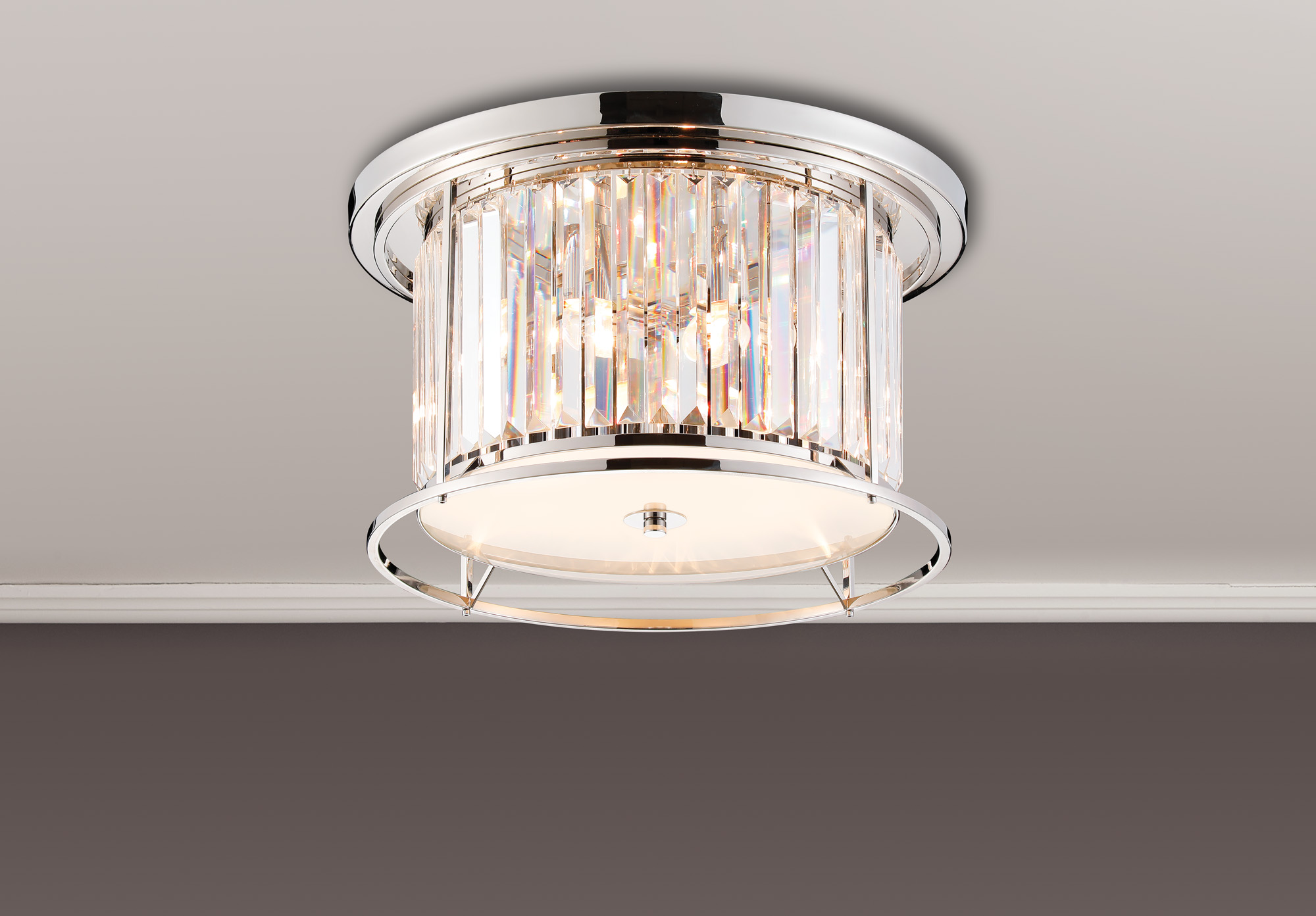Flush crystal ceiling light, finished in Polished Nickel with continuous flow of crystals, ideal for homes with lower ceiling heights. Looks stunning a centre piece in the lounge or bedroom but also works well in dining rooms and hallways.