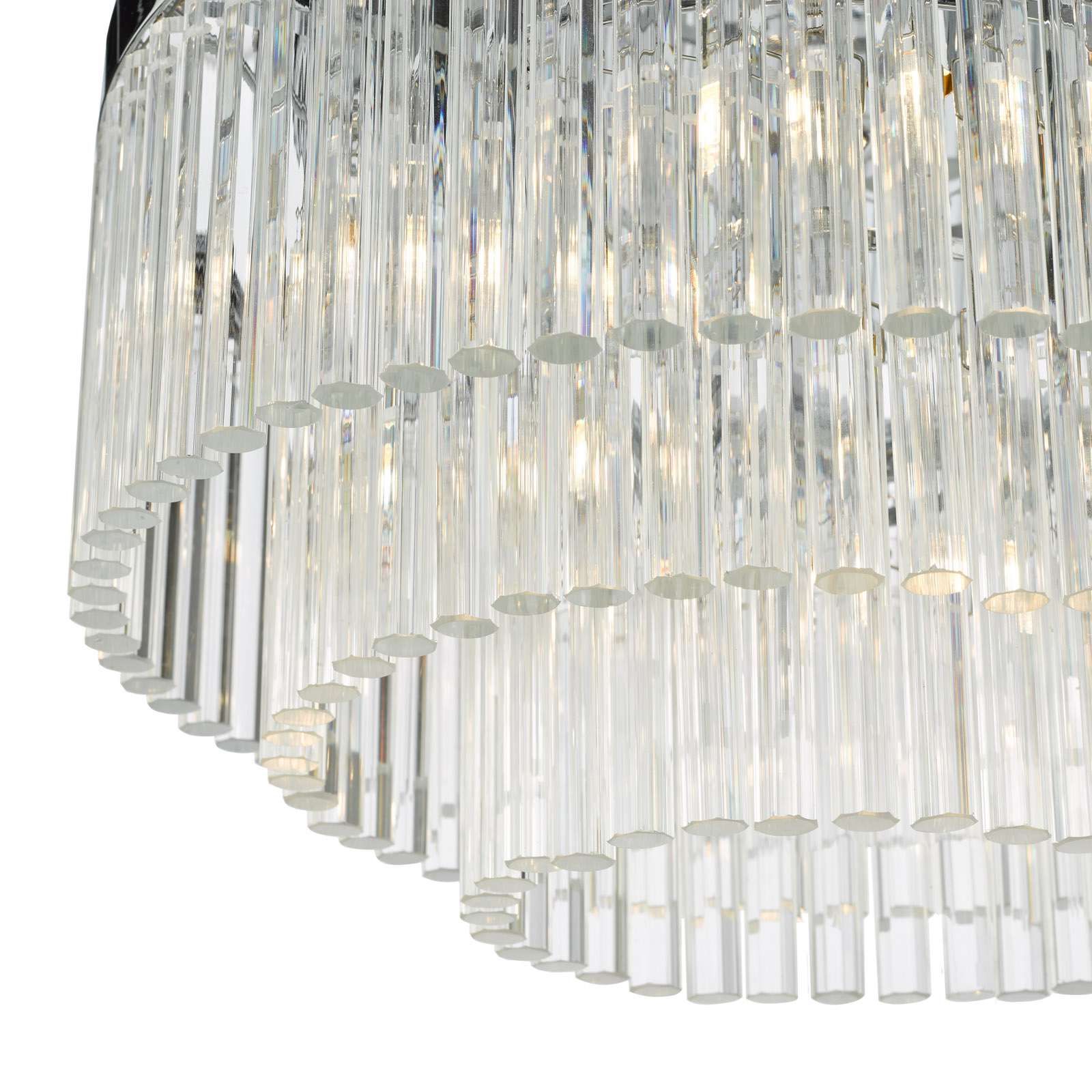 The Logan 5-light semi-flush ceiling light in polished chrome is comprised of three tiers of clear crystal to give a modern take on the usual tiered chandelier. Compatible with our G9 LED lamps, sold separately.