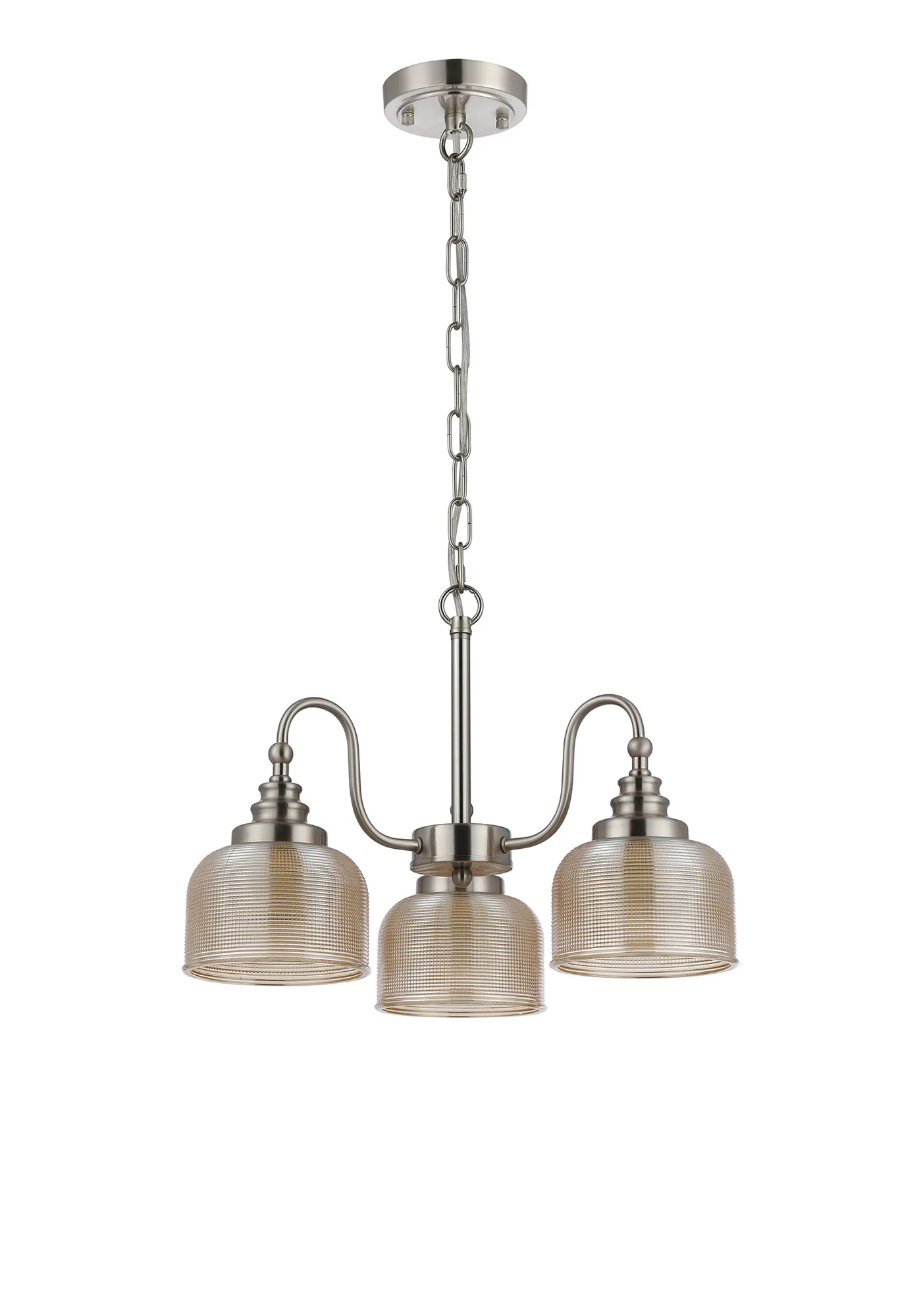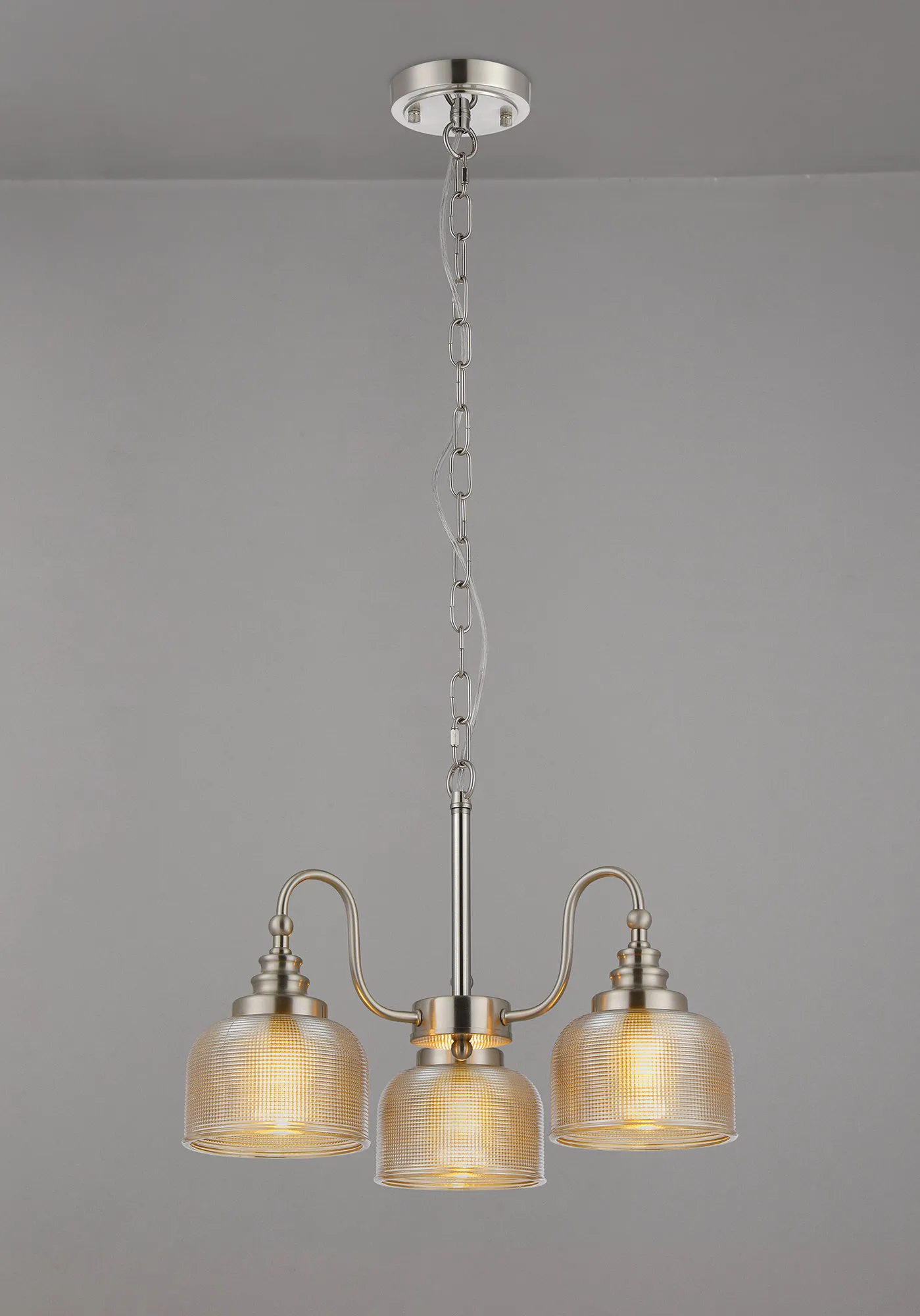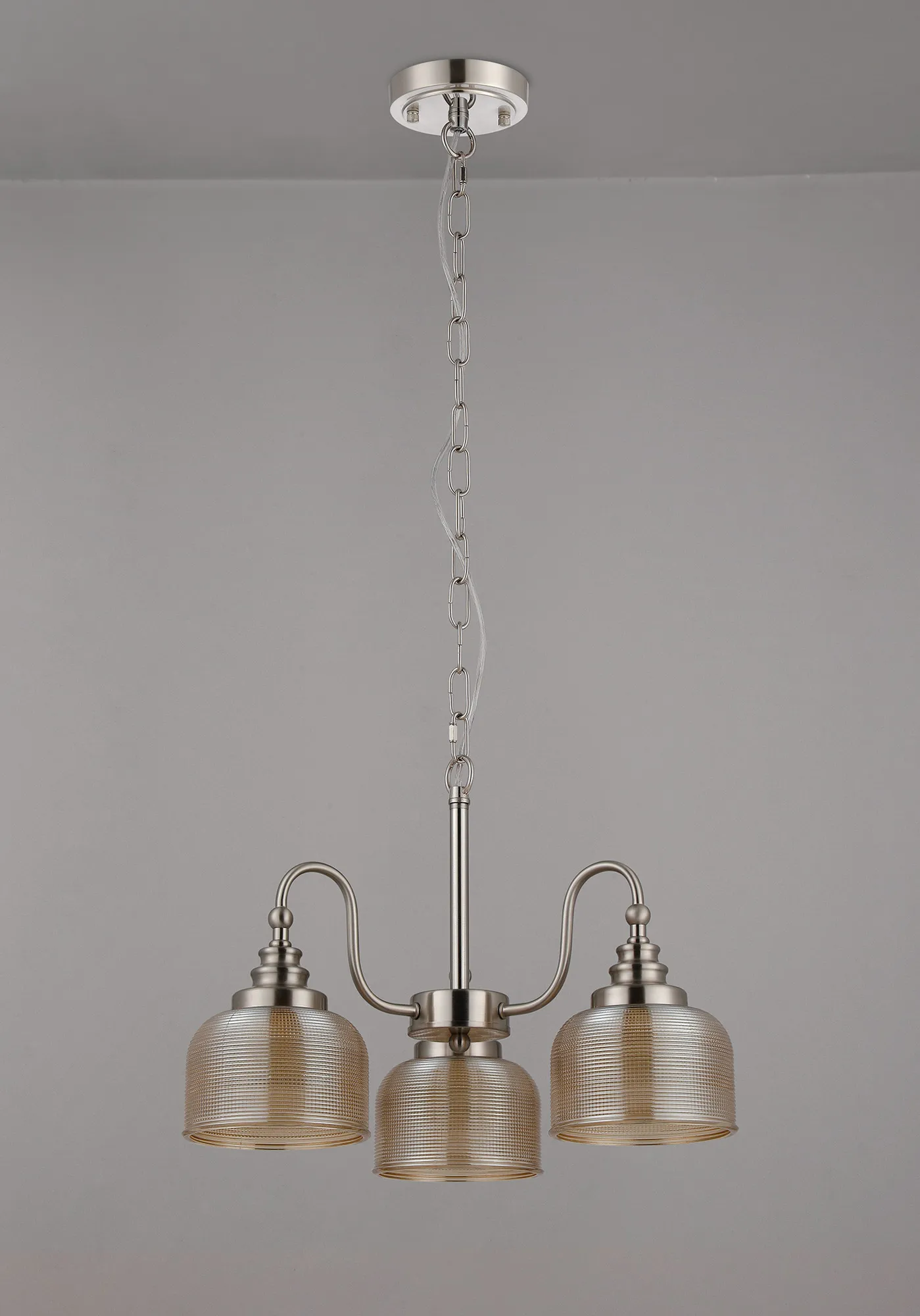 50011454 Sherborne 3 Light Pendant Satin Nickel / Amber Glass