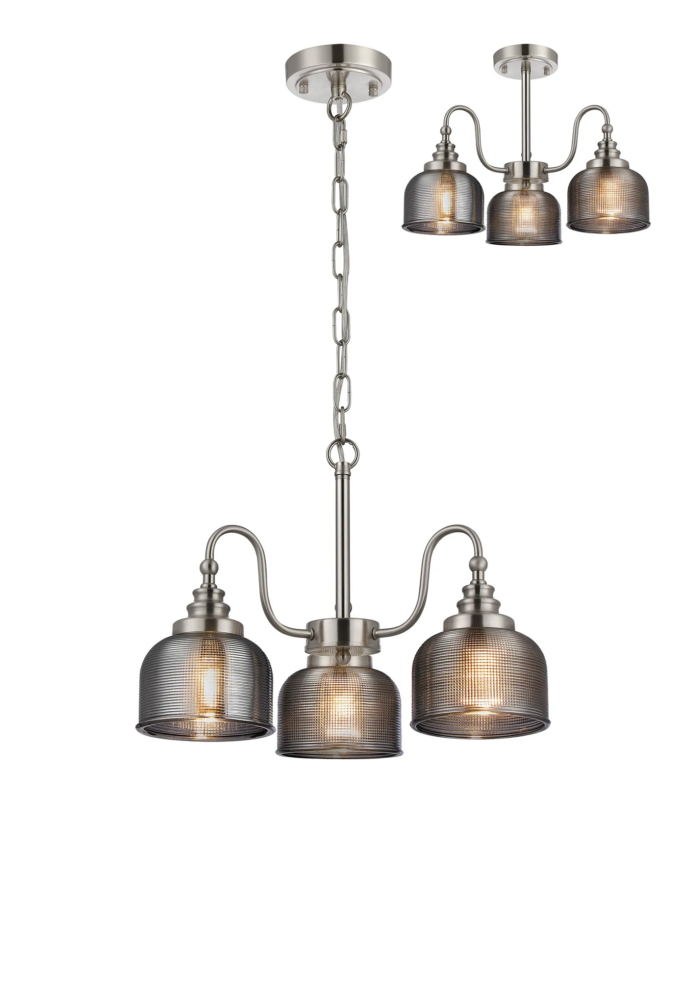 50011456 Sherborne 3 Light Pendant Satin Nickel / Smoked Glass